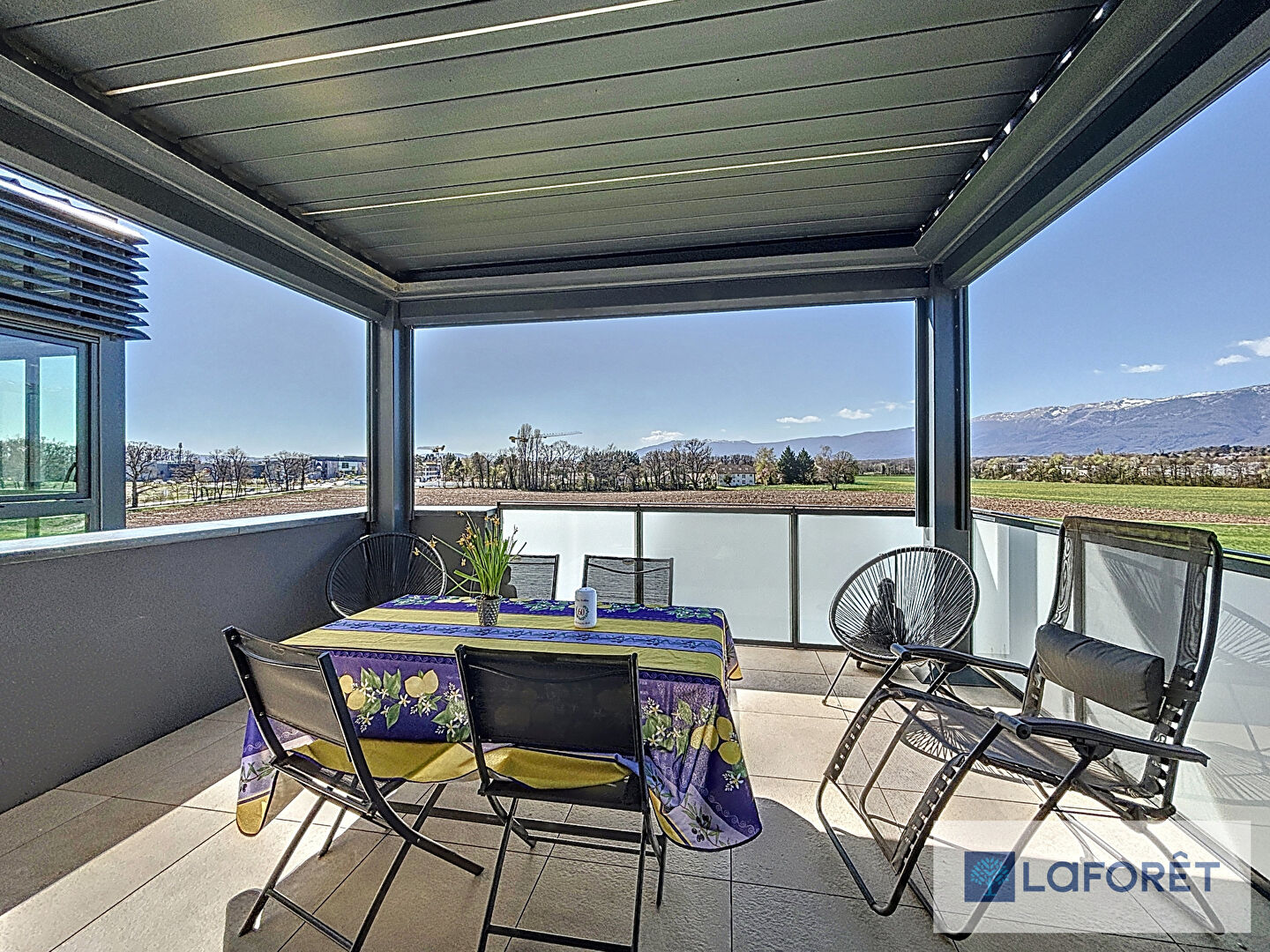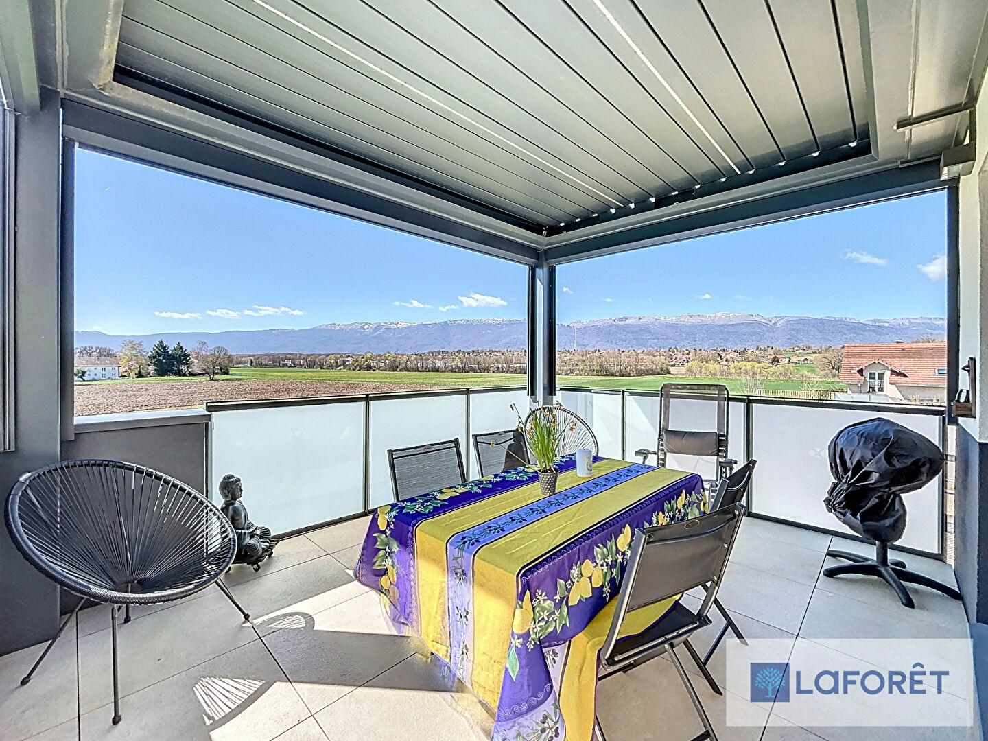 L'atout majeur de ce bien réside dans sa terrasse qui offre une vue sur le Jura, parfaite pour profiter de moments en extérieur.