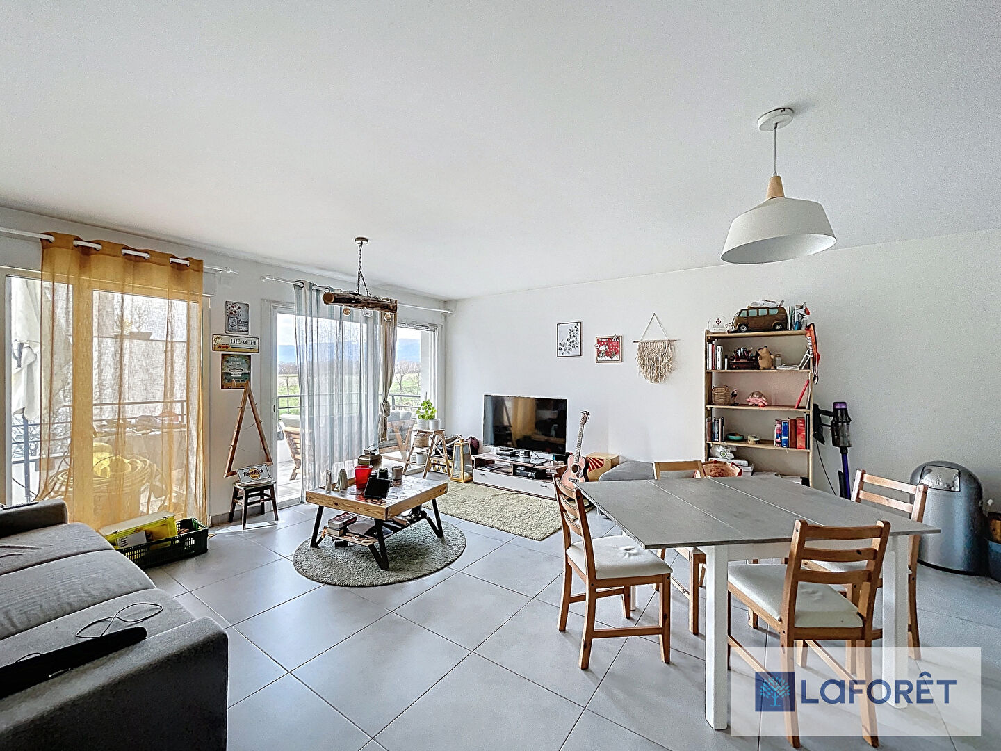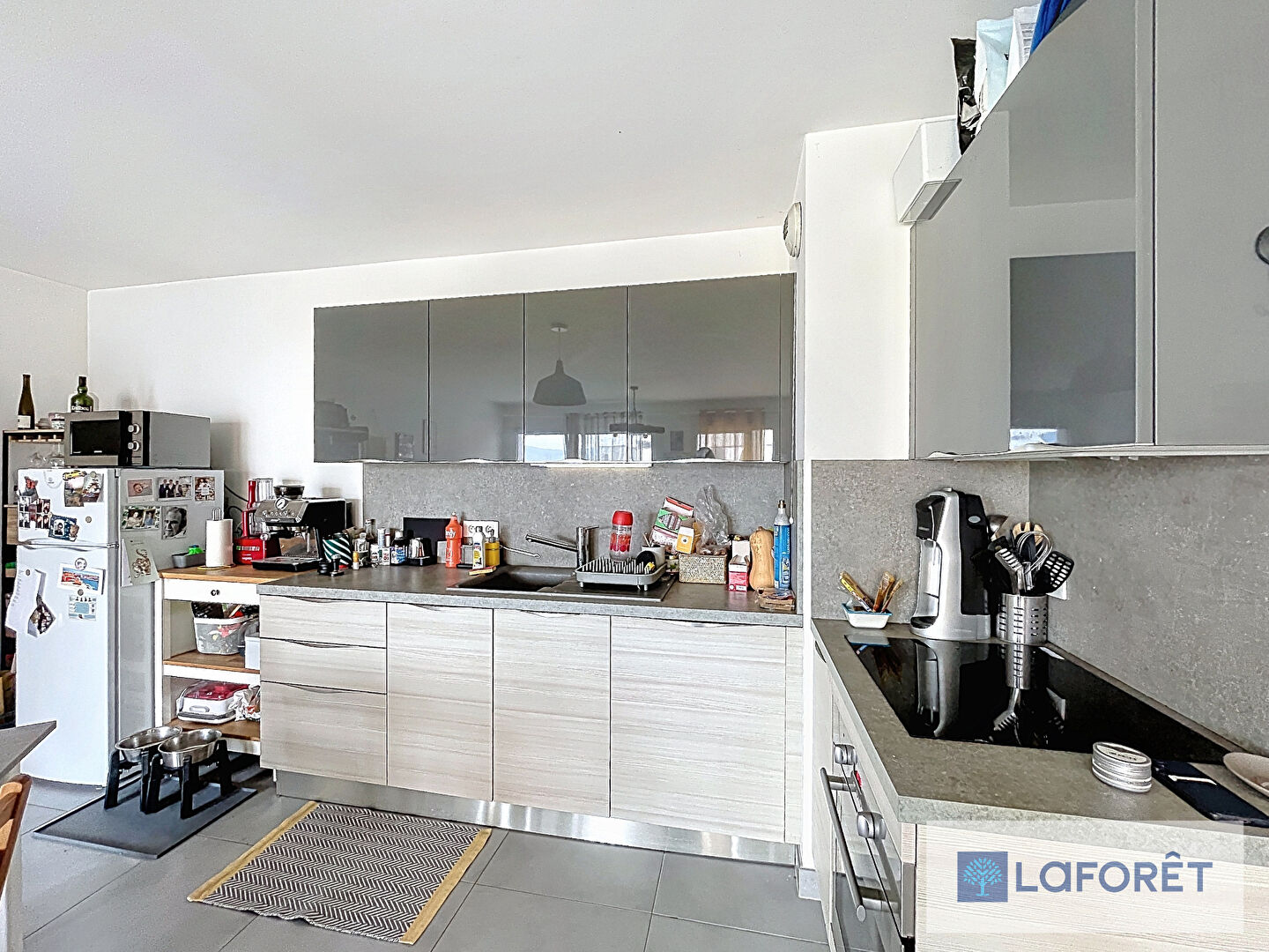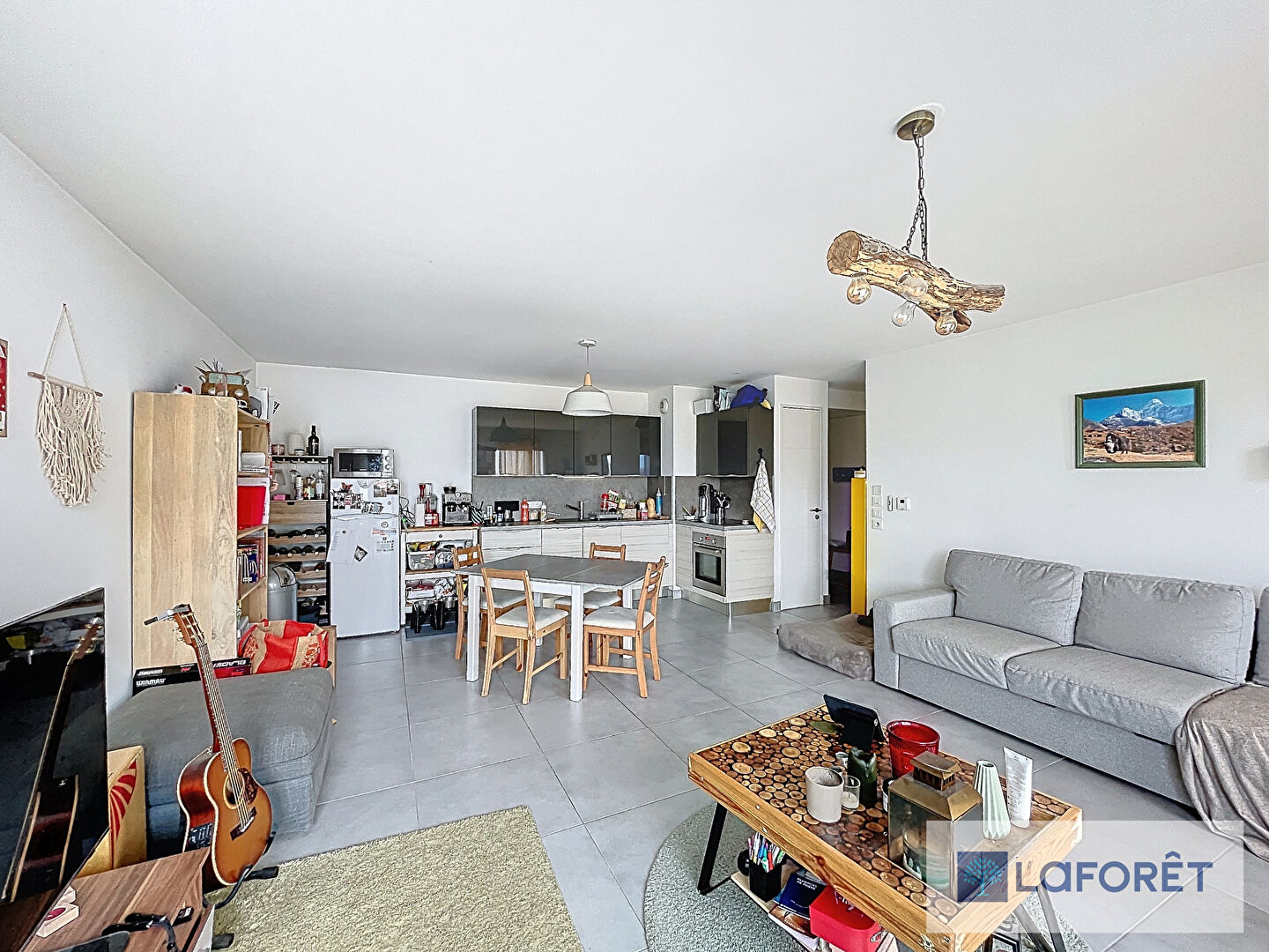 T3 de 65.50m², composé d'une entrée, séjour donnant sur vaste terrasse de 15m², cuisine équipée(four, plaque ,hotte ,évier ,lave vaisselle, meubles haut et bas) , 2 chambres, salle de bains et wc séparé. Chauffage au sol et production d'eau chaude par chaudière collective gaz naturel (inclus dans provision sur charges).