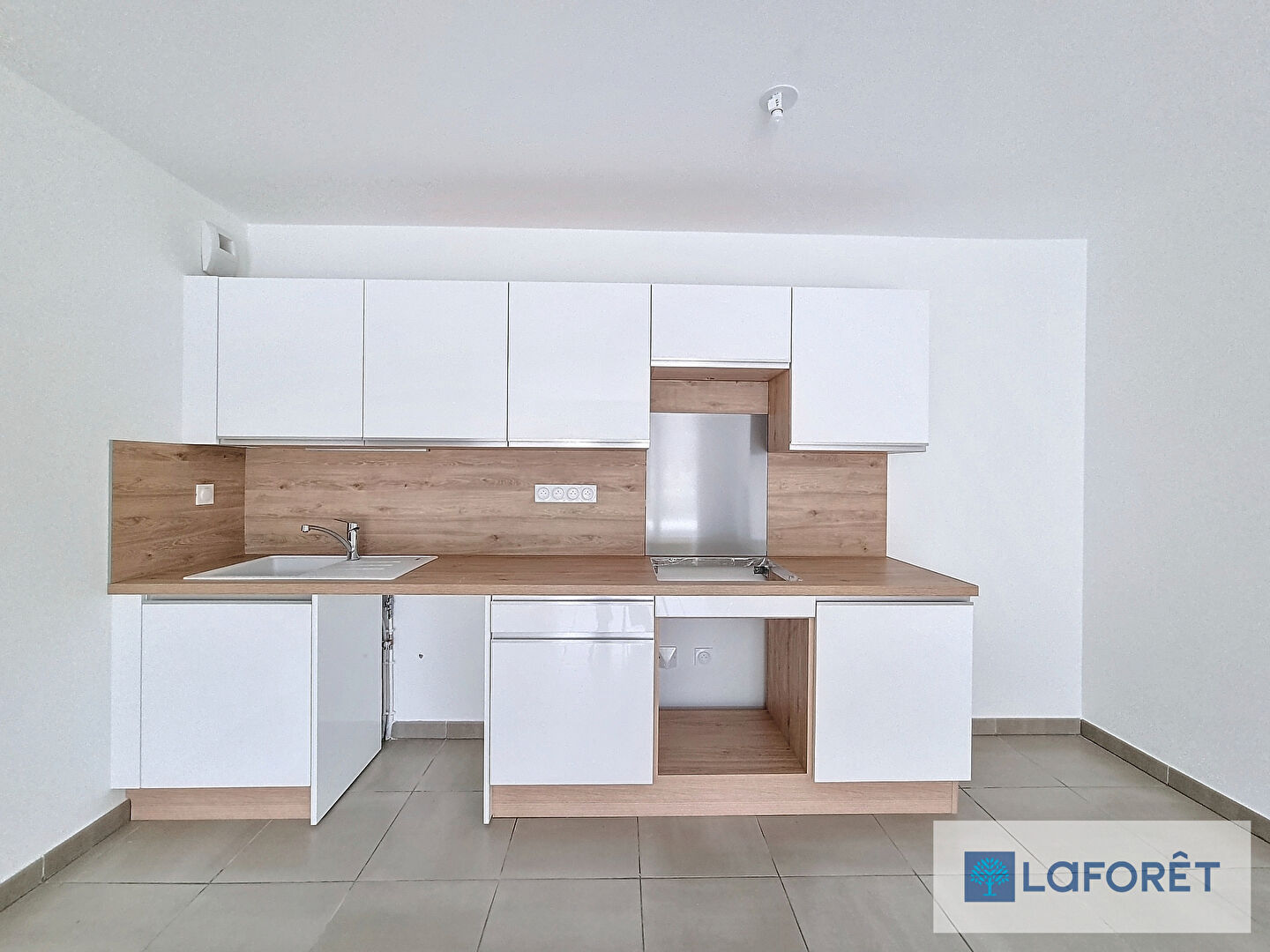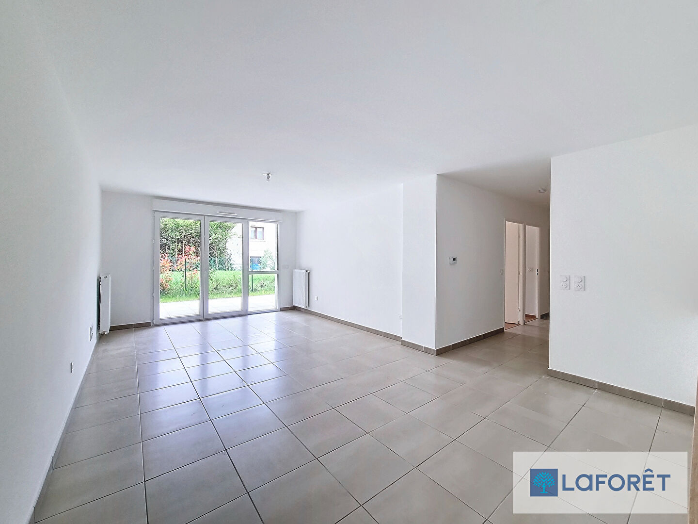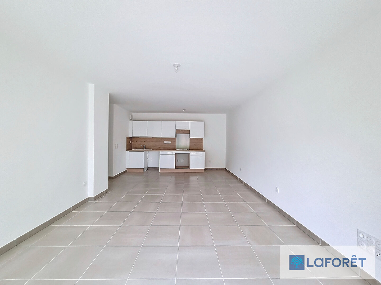 Au rez de chaussée, il s'agence comme suit : Une entrée avec placard, une cuisine meublée ouverte sur un spacieux salon/séjour, deux chambres, une agréable salle de bains et un WC séparé. Un garage et une place de parking complètent ce bien. Eau froide comprise dans les charges.