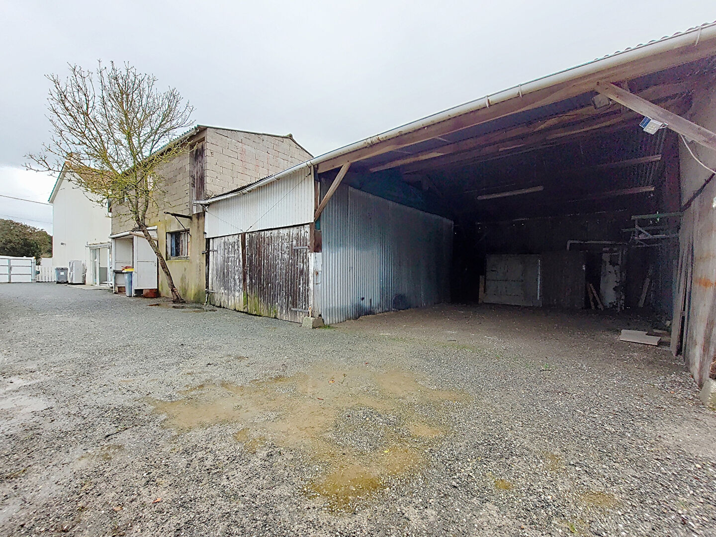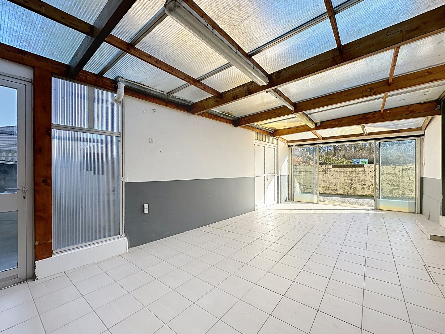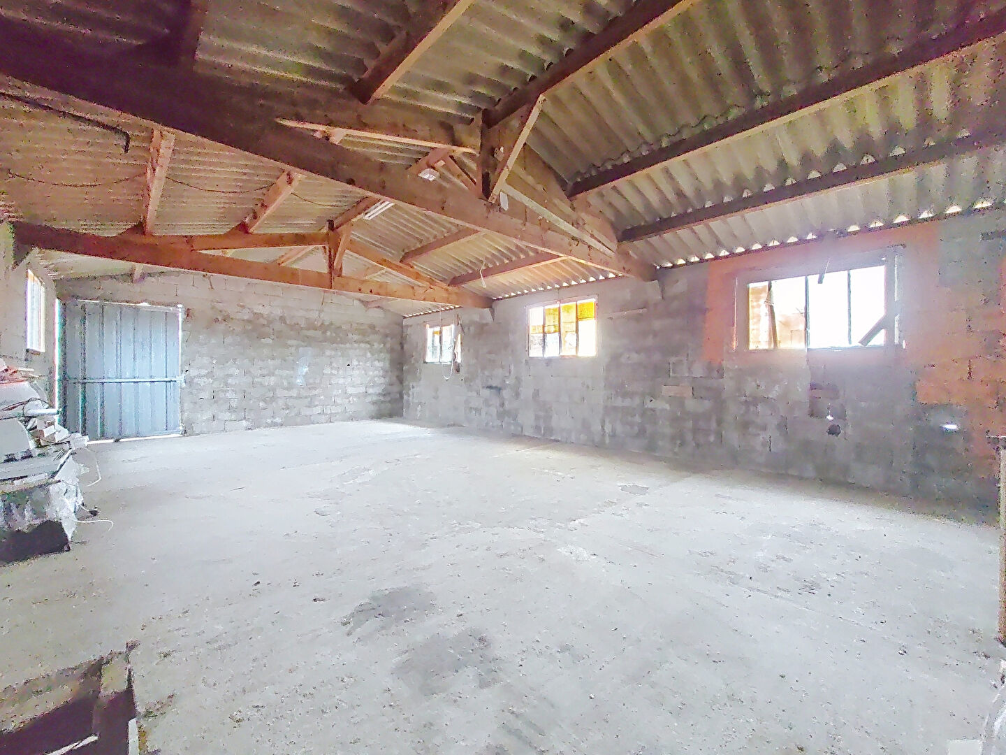 À l'extérieur, vous bénéficierez d'un grand garage d'environ 120 m², offrant de nombreuses possibilités (stationnement, atelier, stockage?).