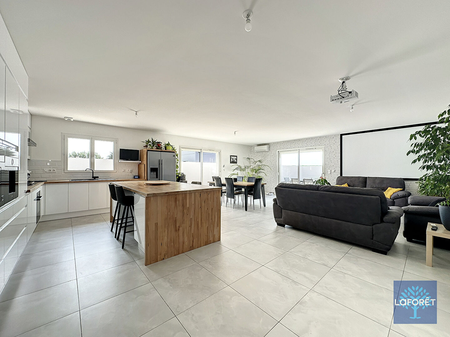 Côté pratique : double garage attenant de 40m² (isolé, carrelé), construction neuve. Pompe à chaleur/clim réversible sur toute la maison.
