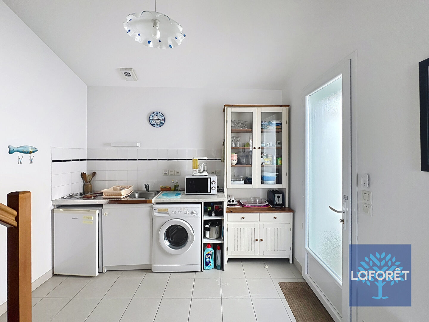 Cette maison est idéale pour une résidence secondaire, elle vous accueille dans un hall d'entrée avec vestiaire, un wc indépendant avec lave-mains, un salon séjour, une cuisine ouverte donnant sur une cour pour y prendre votre déjeuner à l'abri des regards. A l'étage, vous y découvrirez une chambre spacieuse avec dressing et salle d'eau.