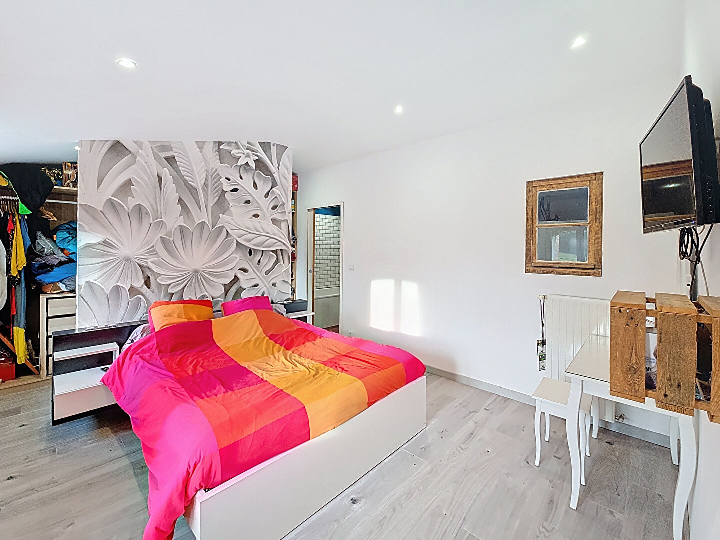 La partie nuit se compose d'un bureau, de 2 chambres avec placard, une salle d'eau, un WC indépendant, et d'une suite parentale avec un dressing, une salle de bains avec douche et WC.