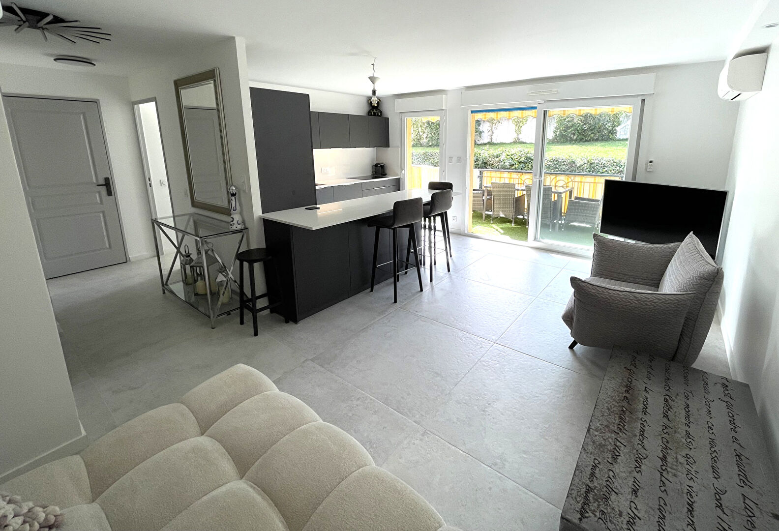 LAFORET IMMOBILIER Saint Laurent du Var vous propose EN EXCLUSIVITÉ à St Laurent un Appartement de 2 pièces dans un immeuble de standing et au calme absolu. Cet appartement de 43 m2 entièrement rénové et climatisé bénéficie d'une exposition Sud Ouest et d'une vue verdure sans vis à vis. Très belles prestations. Il comprend une entrée, un séjour avec cuisine équipée et aménagée ouverte prolongé par une terrasse, une chambre avec rangement, une salle de douche, toilettes séparées. Idéalement situé à proximité immédiate des commerces, des écoles et des transports.