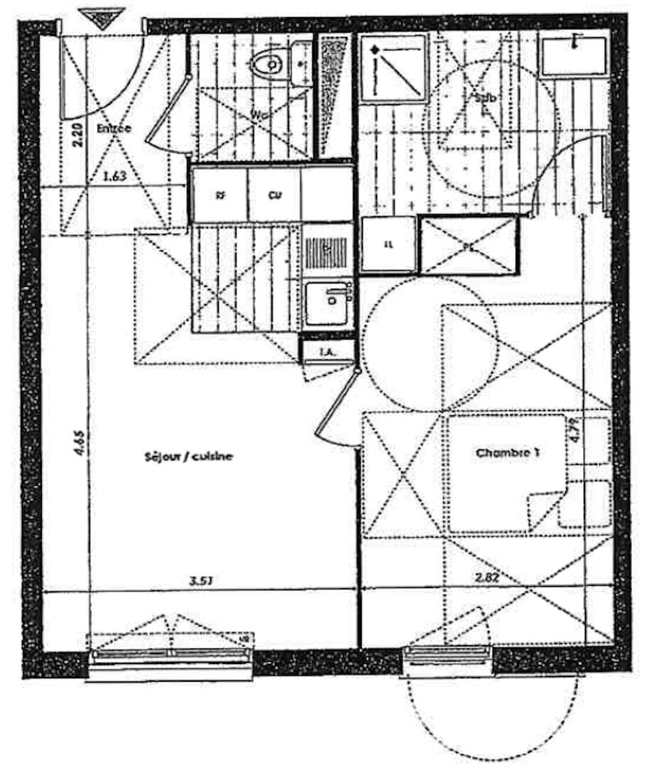 42 m² • 2 pièces • 1 chambre