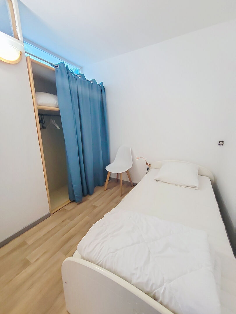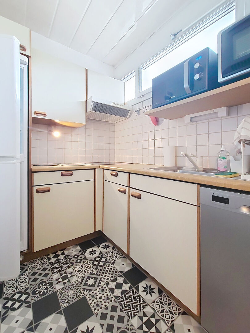 Appartement T2 transformé en T3 composé : de deux chambres avec placards, une salle de bains, toilettes séparés, une cuisine aménagée et équipée et une belle pèce de vie donnant sur une terrasse exposée Sud Ouest.