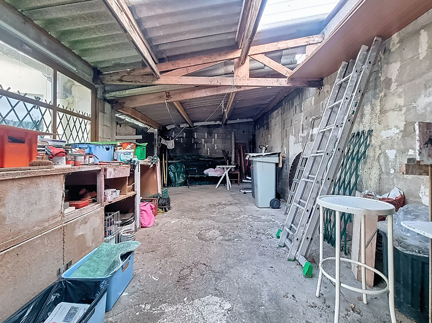 Un jardin, orienté sud, donne l'accès à la maison de 64m2 et aux dépendances de 67m2.