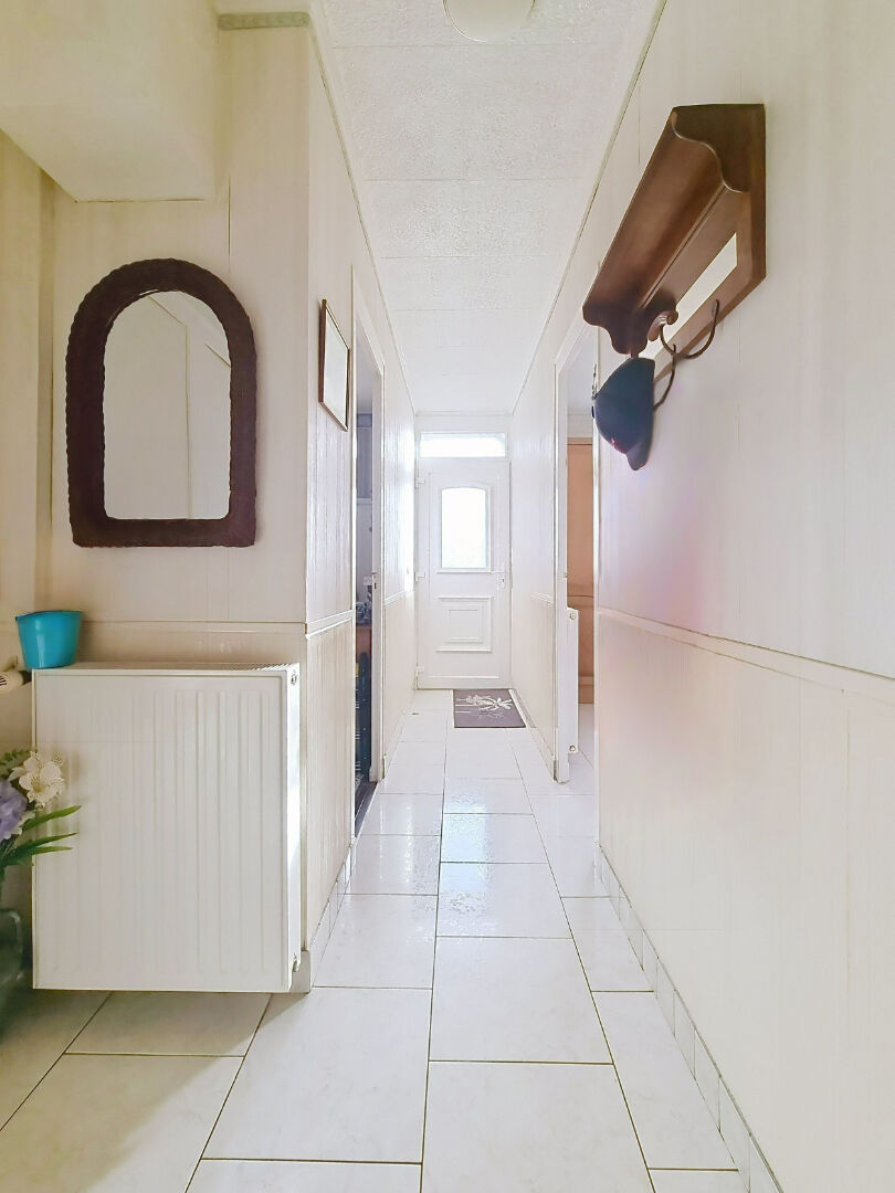 L'entrée de la maison dessert la cuisine, le séjour, les deux chambres, la salle d'eau et les toilettes séparés.