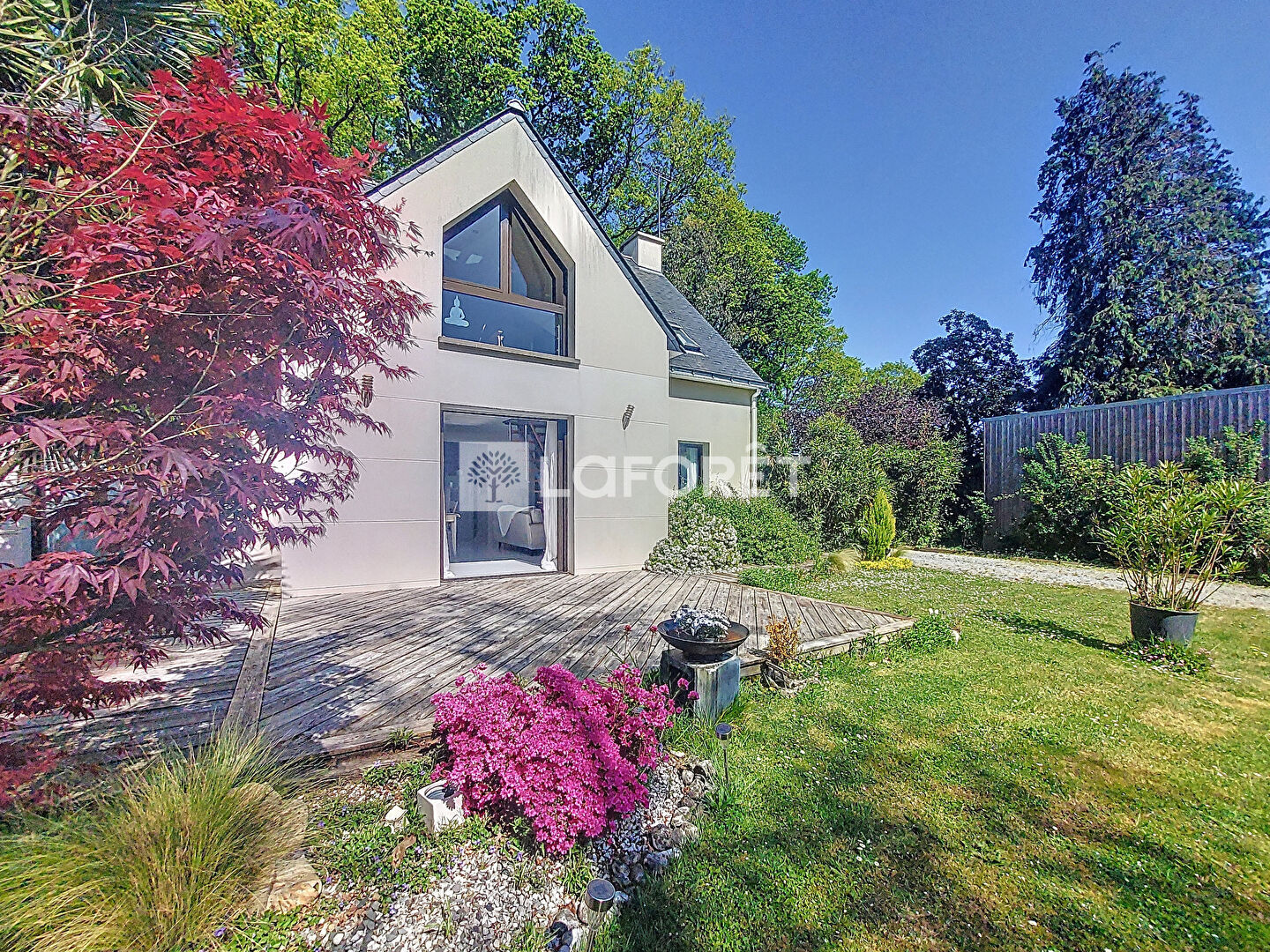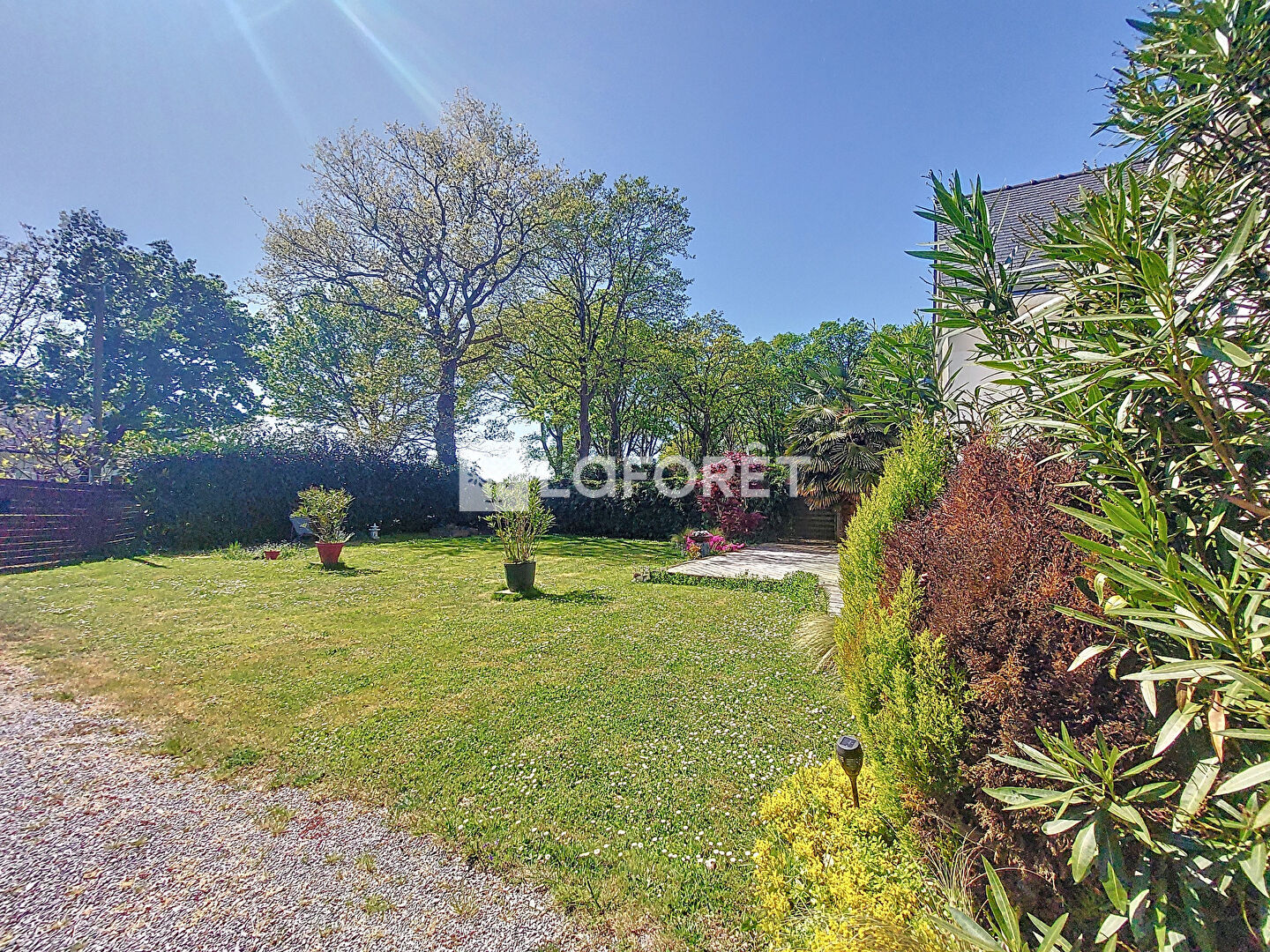 A l'extérieur, appréciez le jardin parfaitement entretenu et clôturé (avec portail motorisé), deux terrasses entourant la maison, un garage (18 m2, avec point d'eau).
