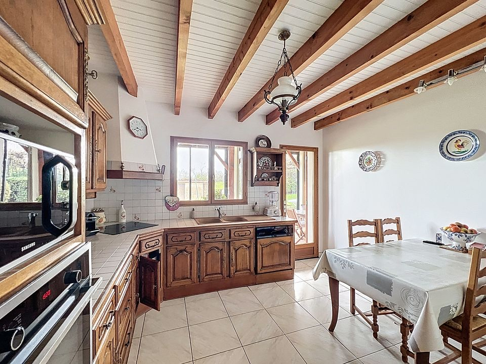 A l'intérieur l'entrée dessert à droite le salon-salle à manger traversant, puis la cuisine indépendante (pouvant être ouverte sur le salon) qui donne sur une belle véranda avec son espace barbecue, ouverte sur le jardin, pouvant accueillir un espace de télétravail.