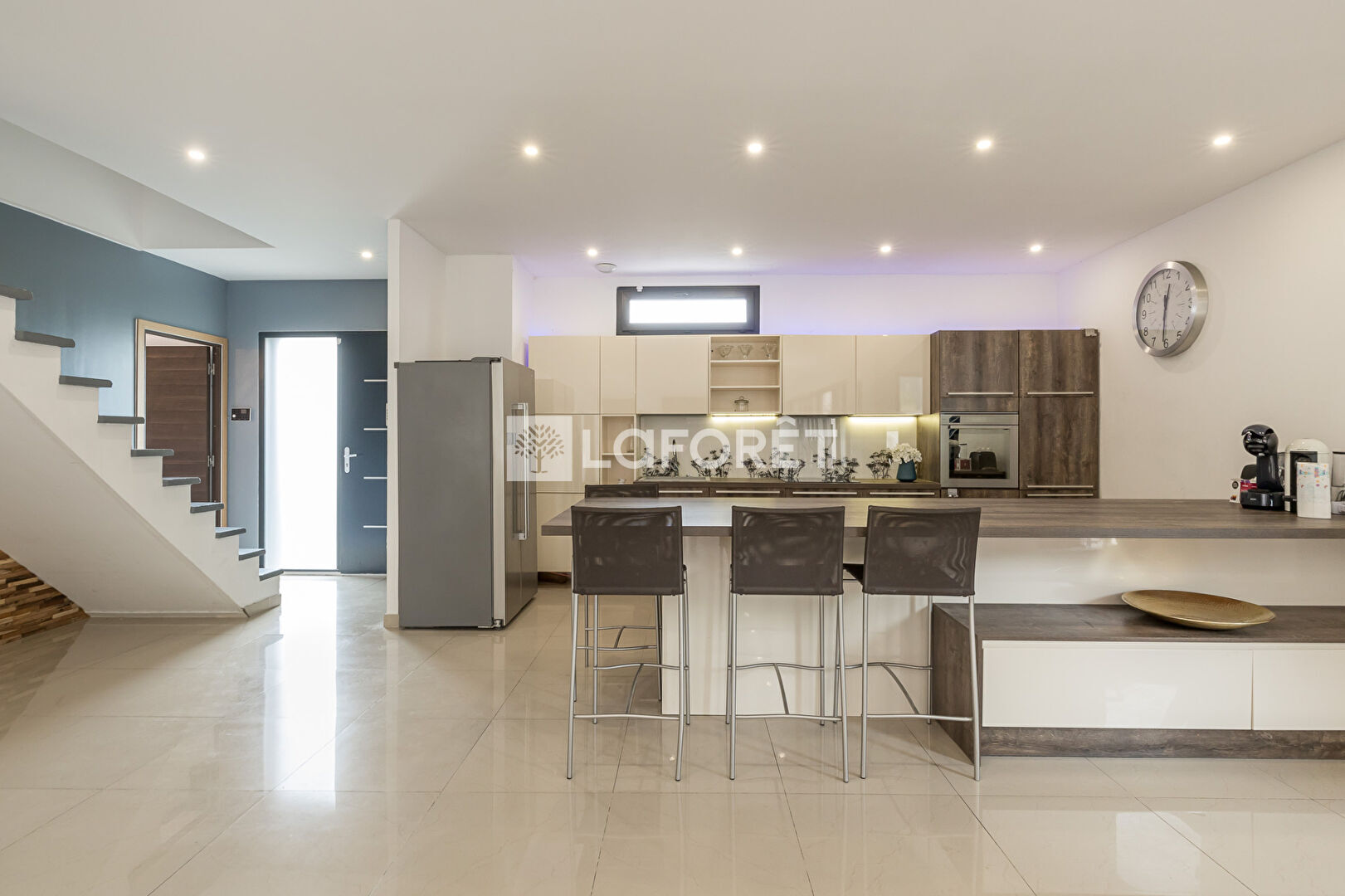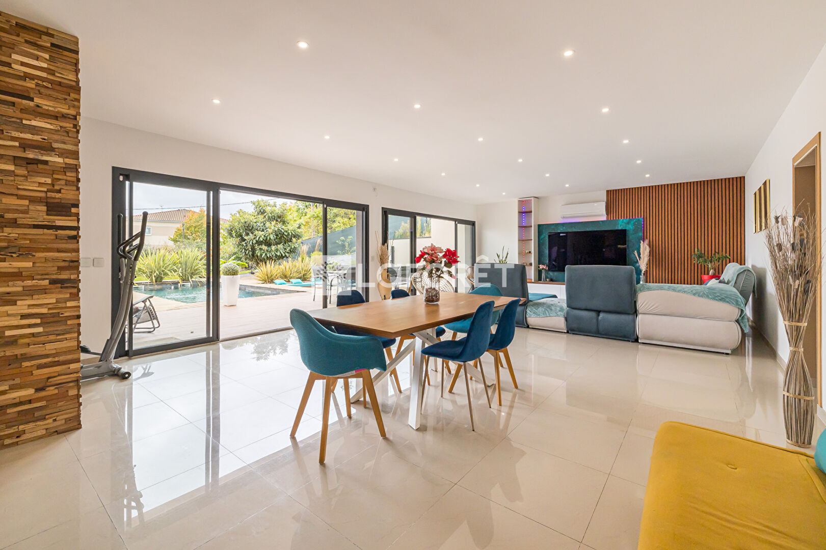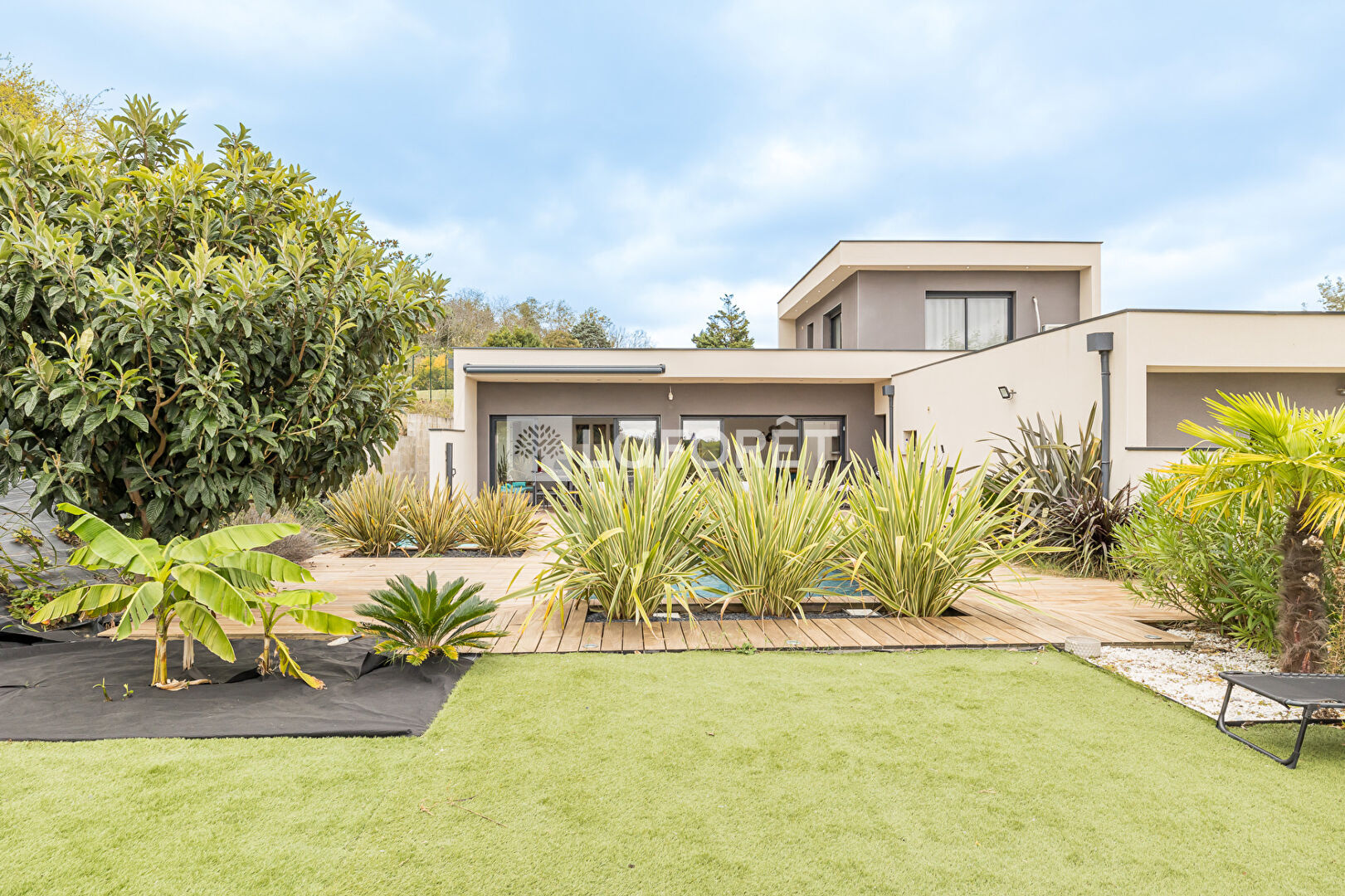 L'espace extérieur, quant à lui, se distingue par une superbe piscine en carrelage esprit balinais. La vaste terrasse qui l'entoure, avec son salon enterré sur mesure, crée une atmosphère idéale pour se détendre et recevoir. La terrasse se prolonge vers un charmant jardin, parfait pour un espace vert apaisant, les jeux d'enfants, ou l'aménagement d'un coin potager.