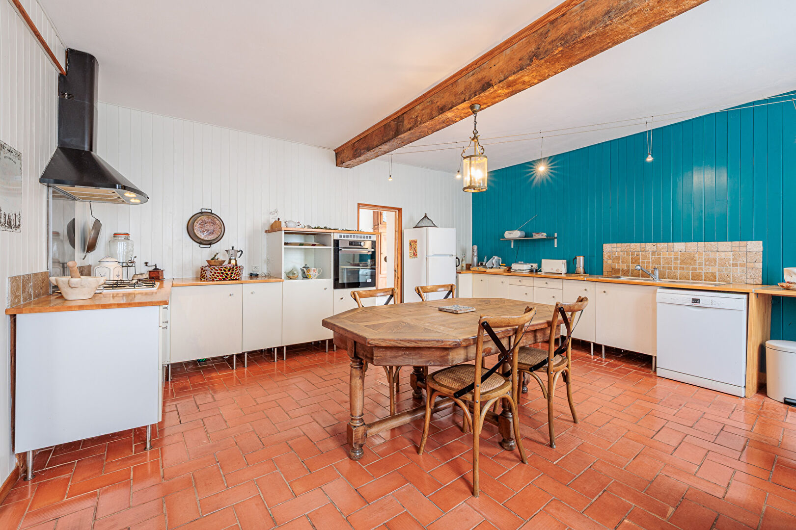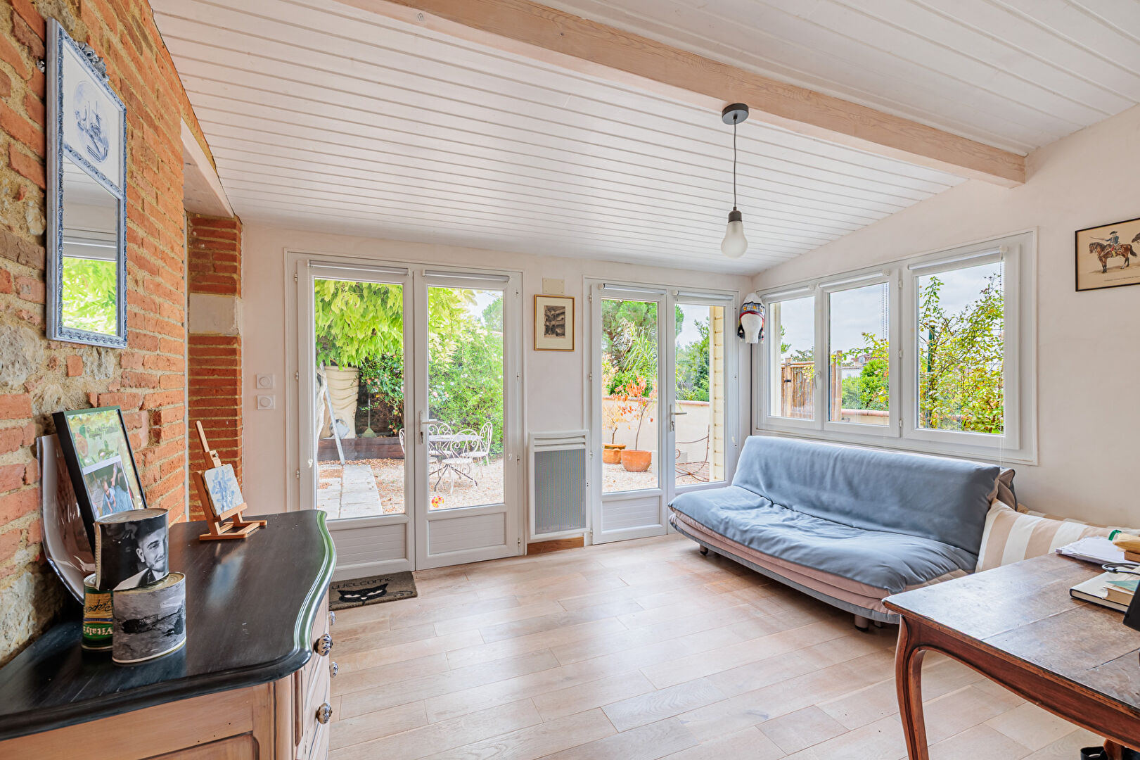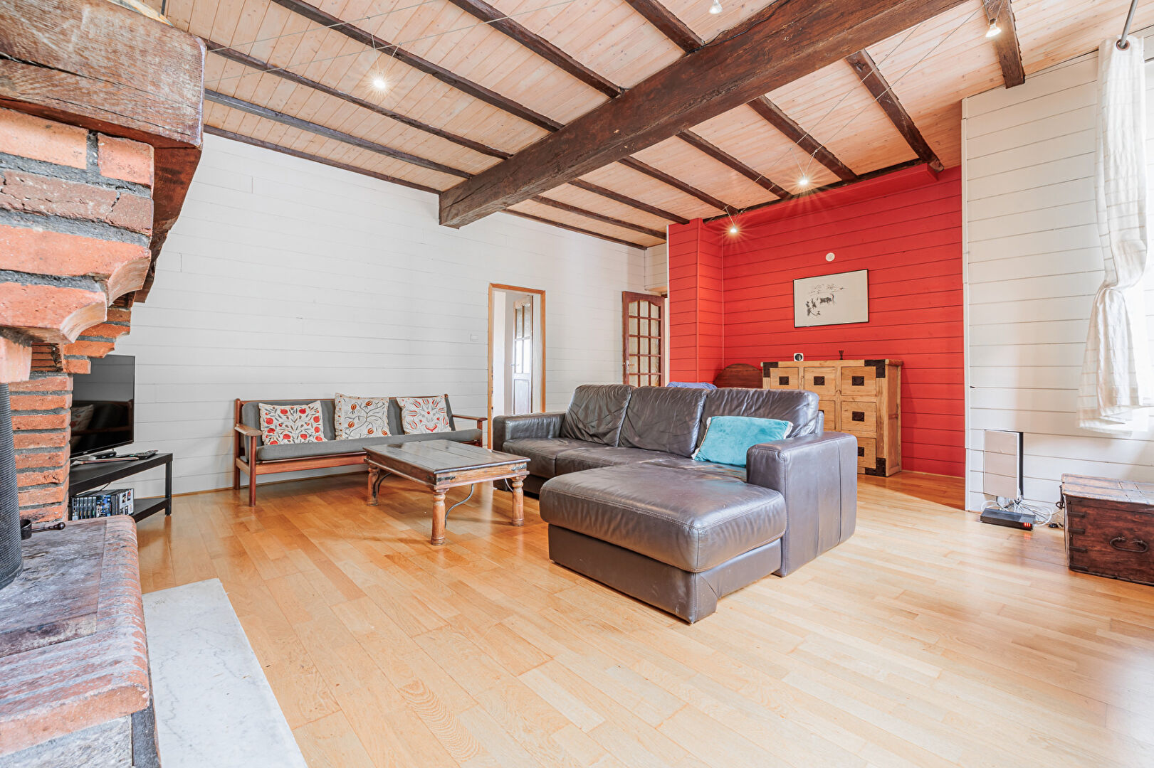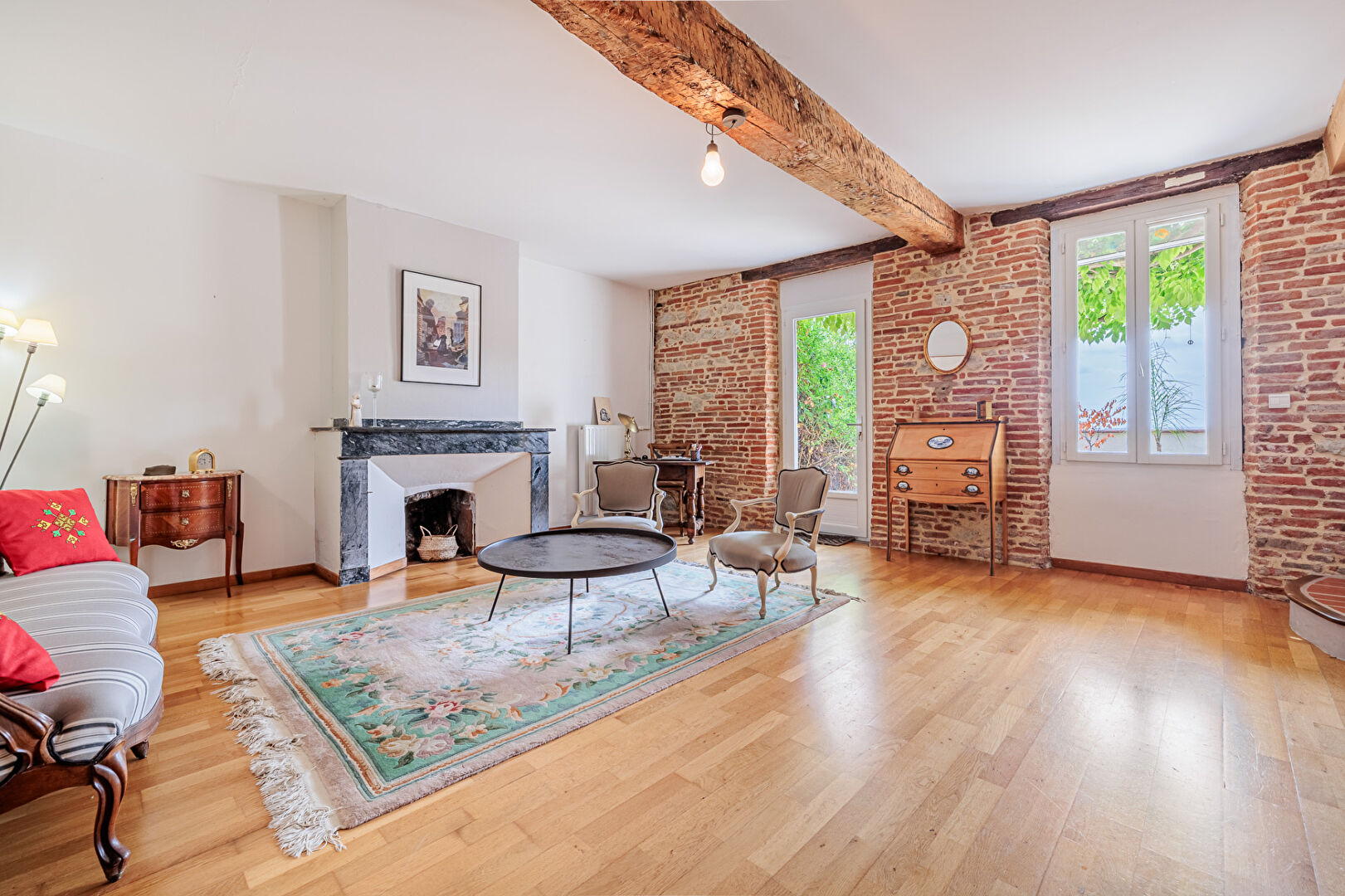 Cette maison allie le charme de l'ancien avec poutres briques et tomettes au confort moderne dans un environnement calme résidentiel.