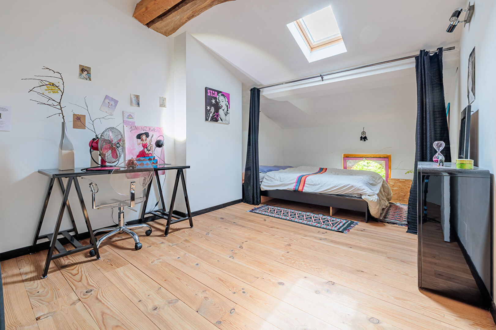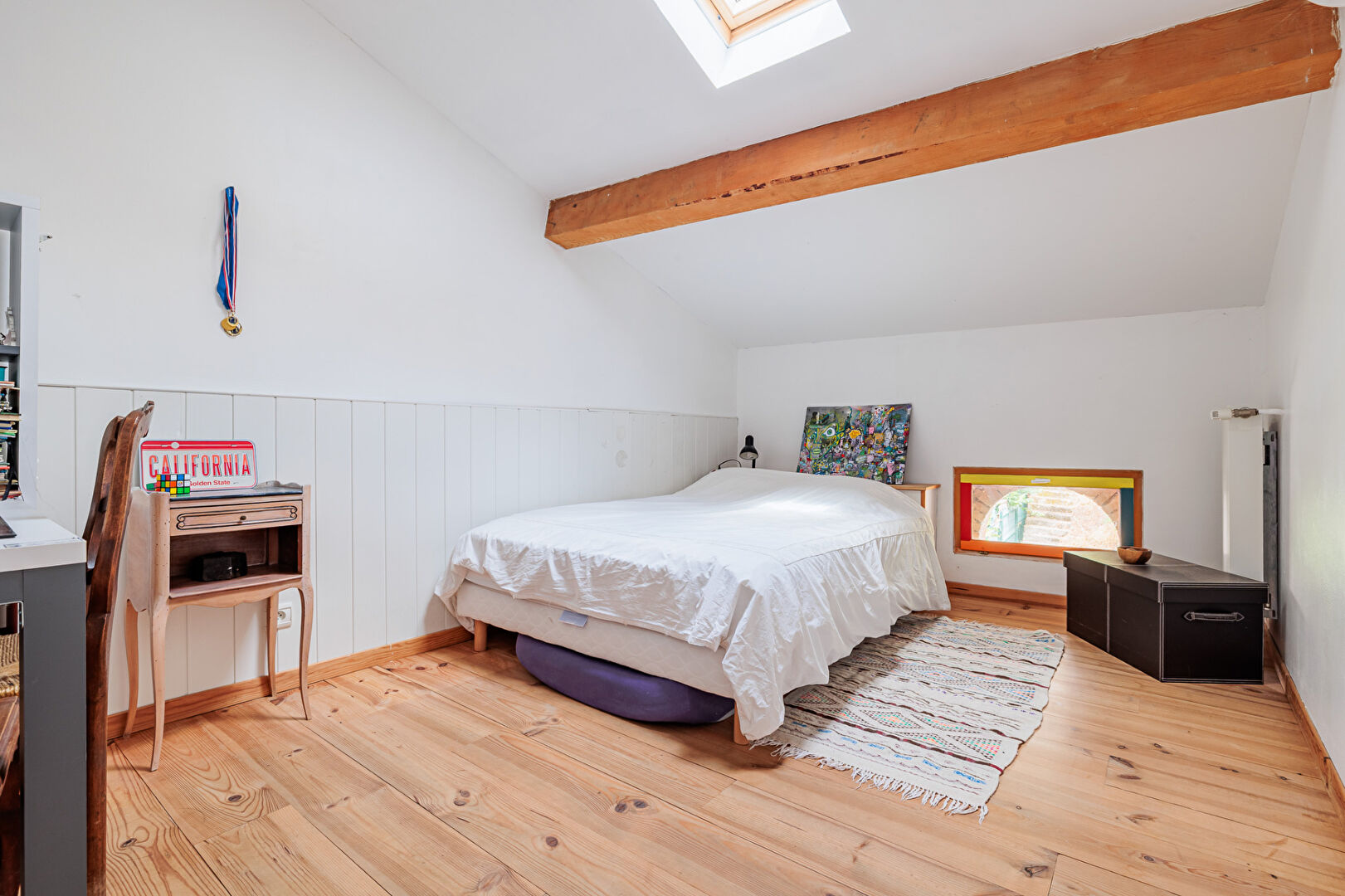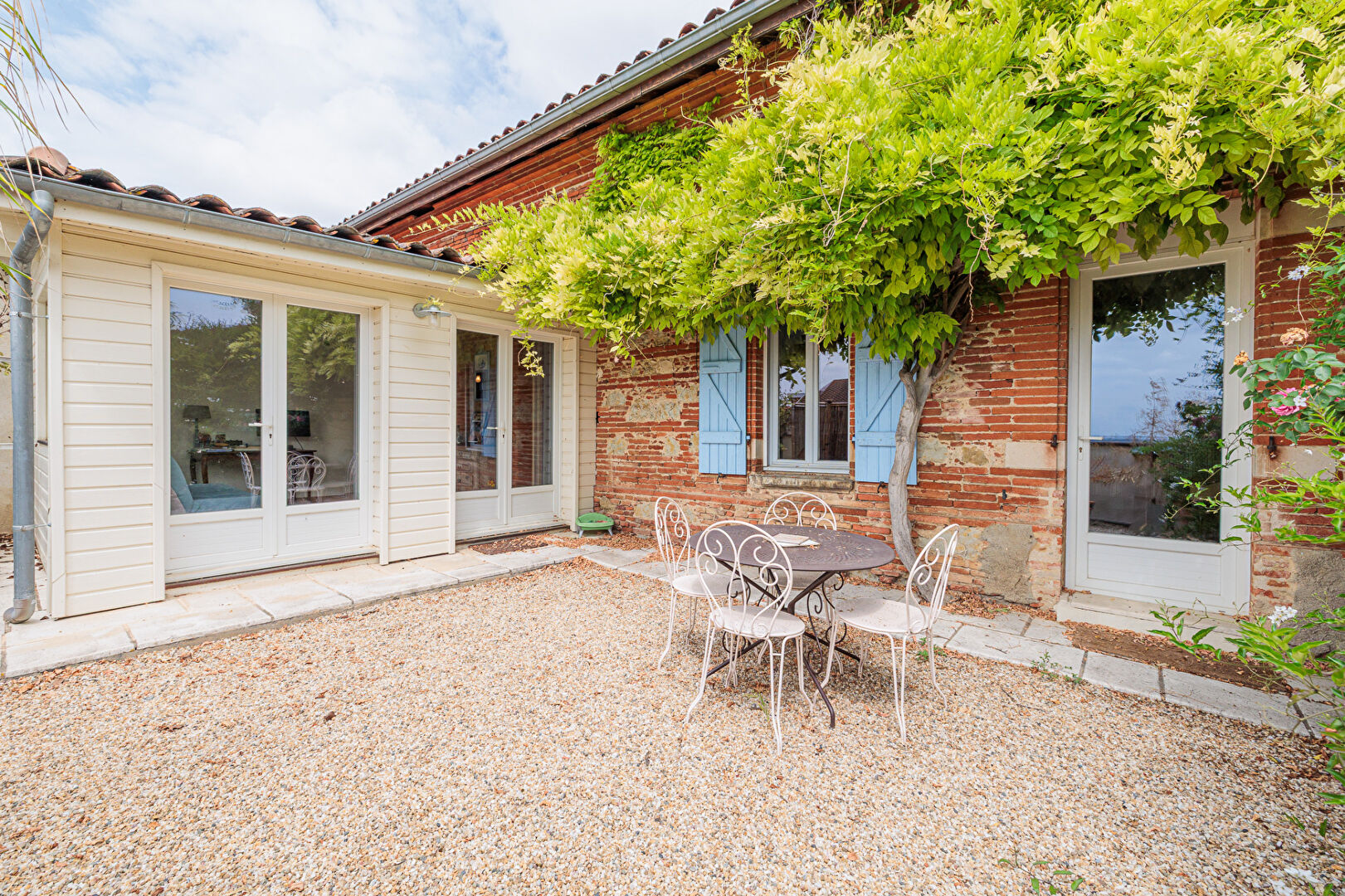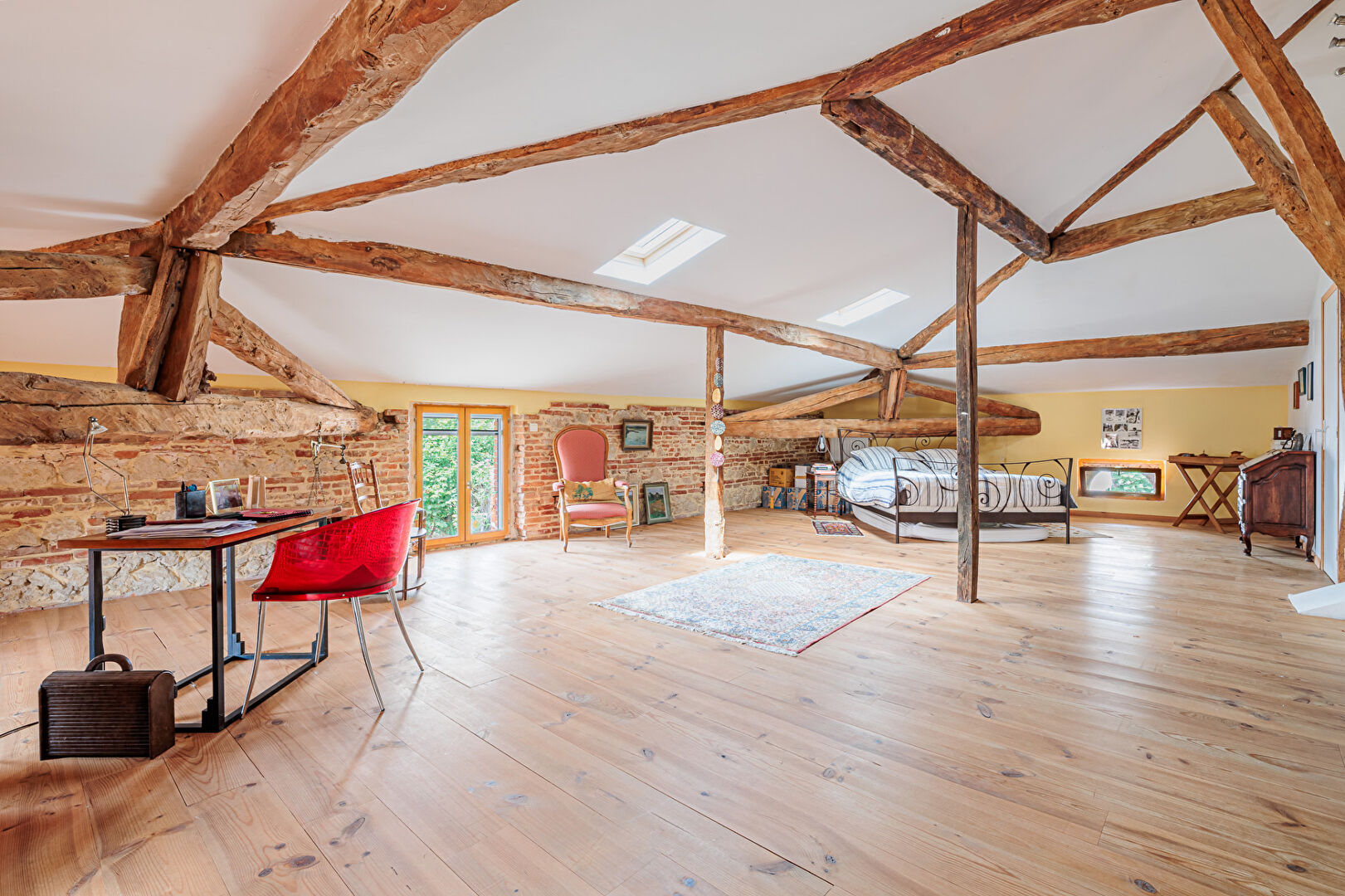 Cette maison allie le charme de l'ancien avec poutres briques et tomettes au confort moderne dans un environnement calme résidentiel.