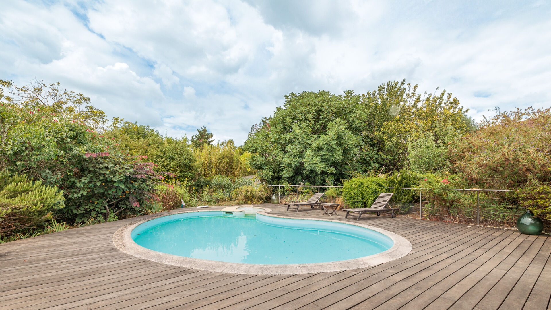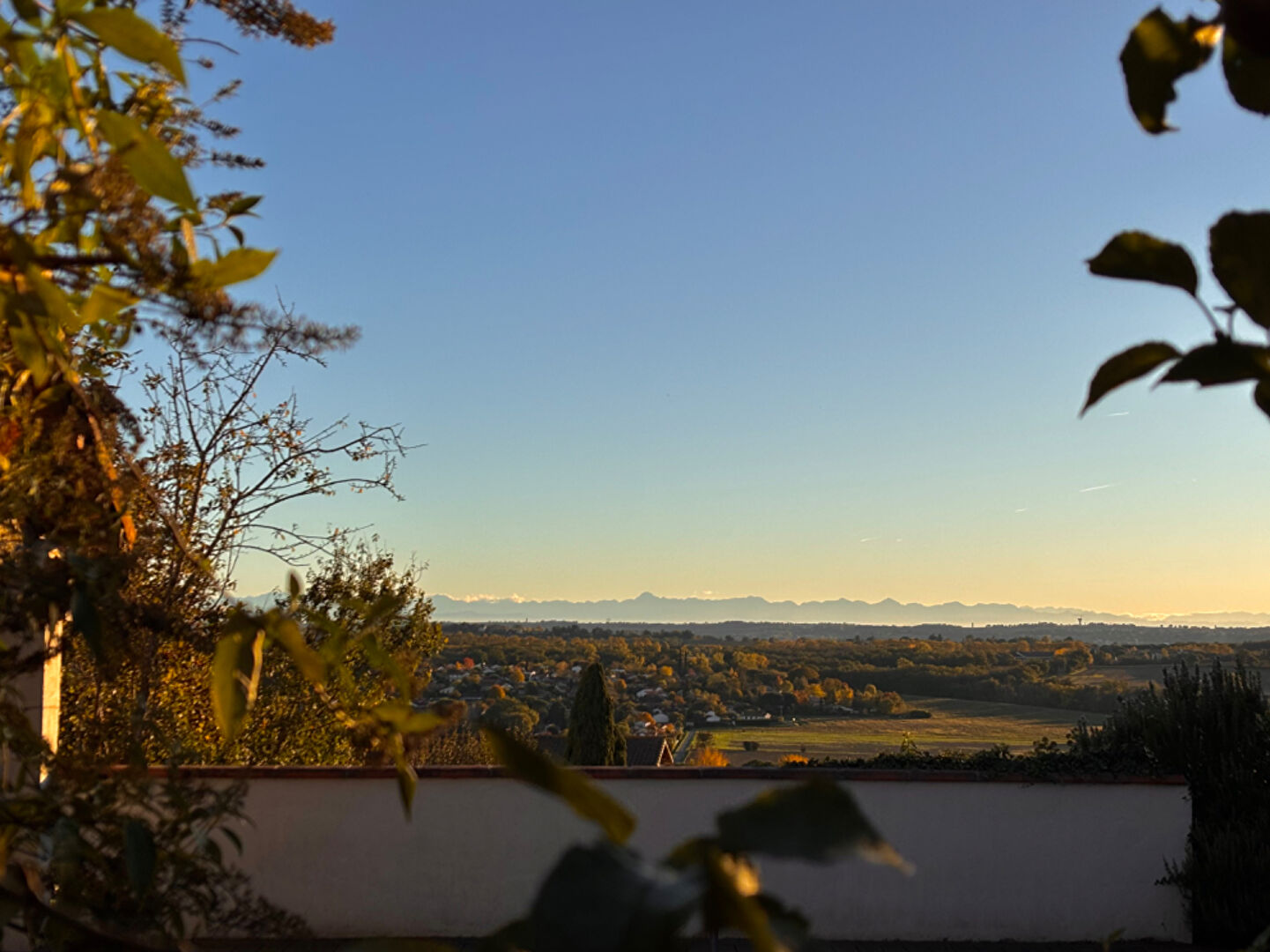 Le terrain d'environ 900 m² est plat, clôturé et arboré de fruitiers, un bel espace piscine avec Vue Pyrénées imprenable vous attend, et une belle terrasse couverte pour des repas conviviaux entre amis ou en famille.
