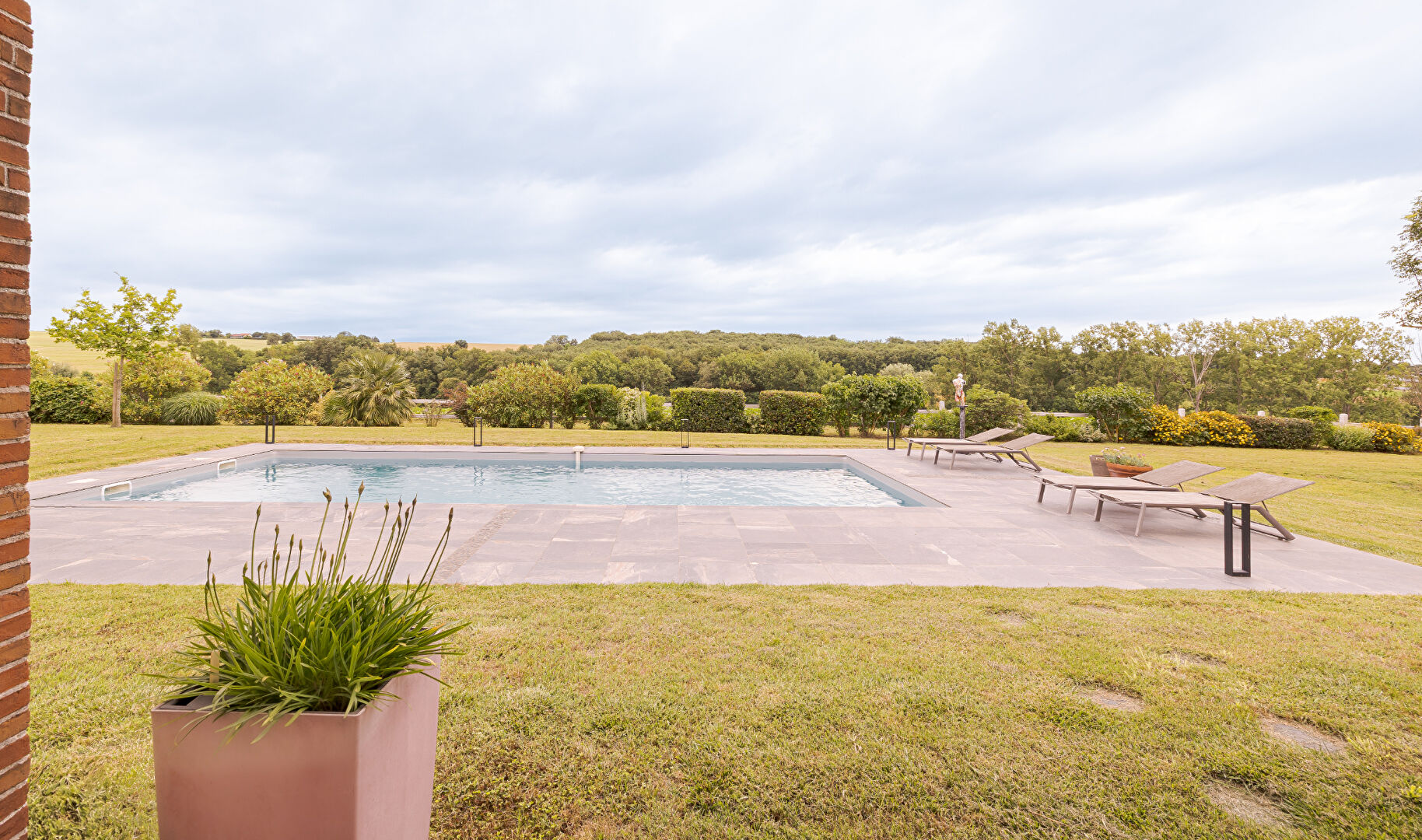 Entièrement restaurée dans le respect de son histoire, la maison a conservé ses briquettes typiques du Lauragais, mises en valeur à travers une rénovation de qualité. L'immense cheminée d'époque trône fièrement dans le séjour, apportant chaleur et authenticité. L'escalier central, quant à lui, a été intégralement repensé et réalisé sur mesure par un ferronnier d'art, ajoutant une touche contemporaine et raffinée à l'ensemble.