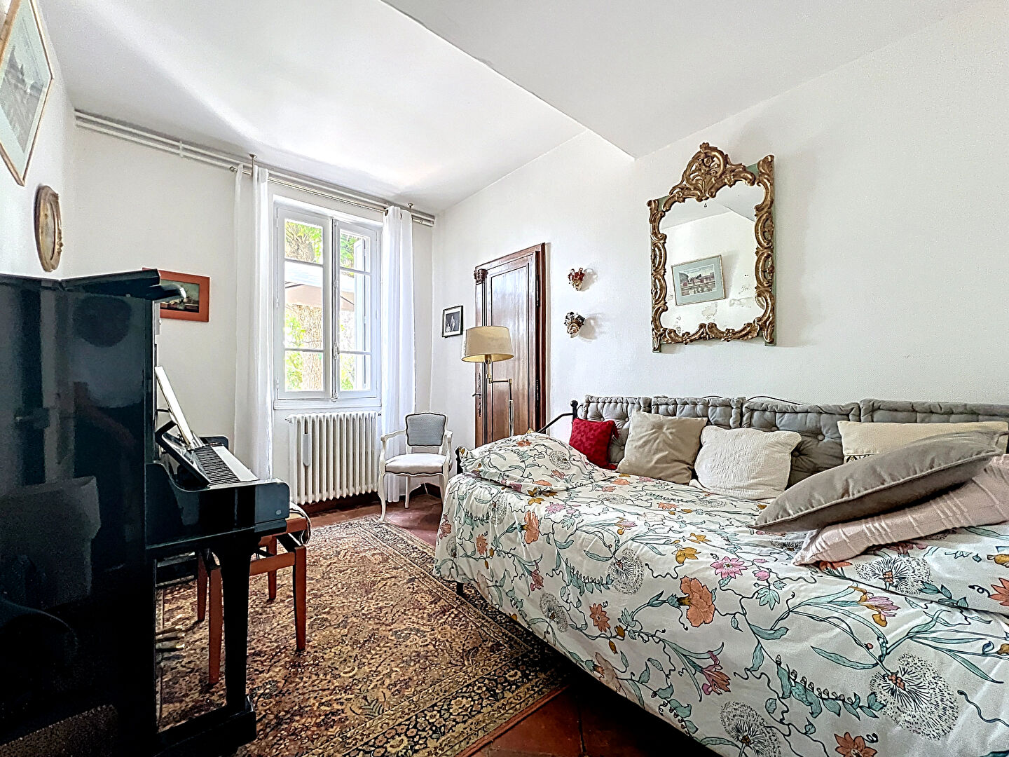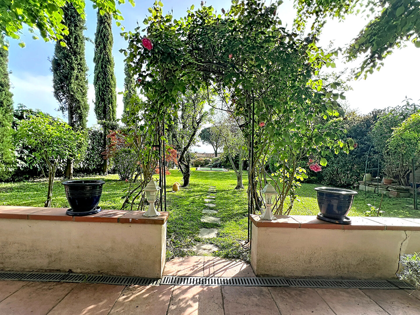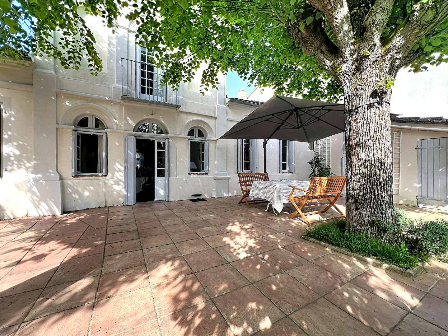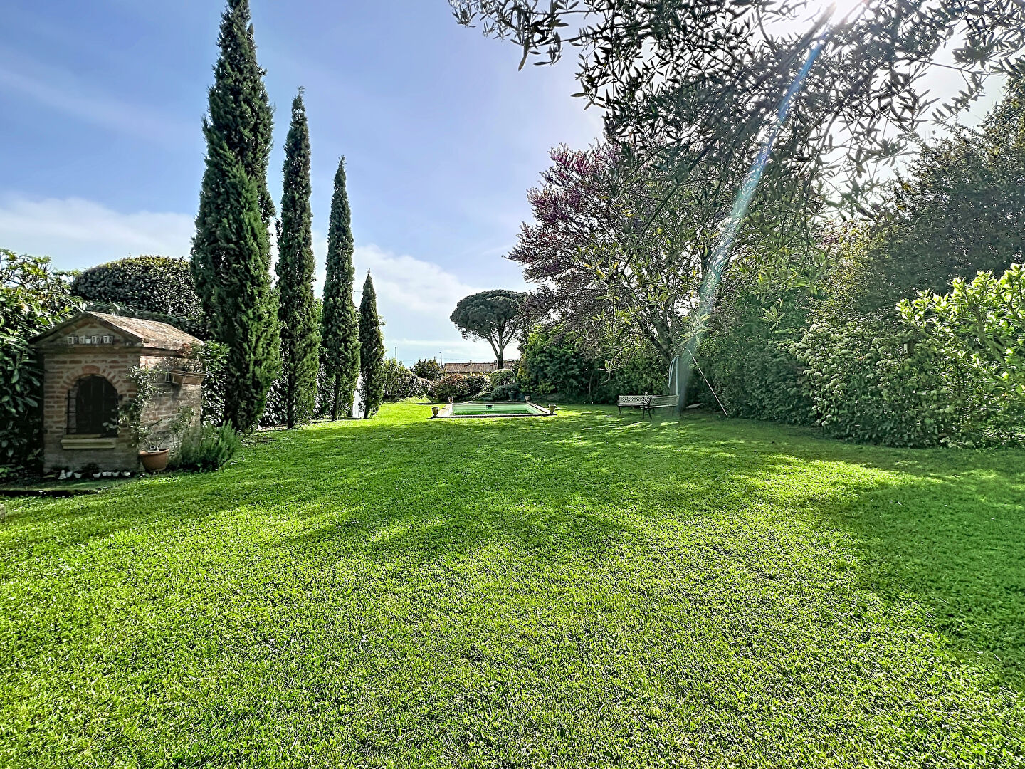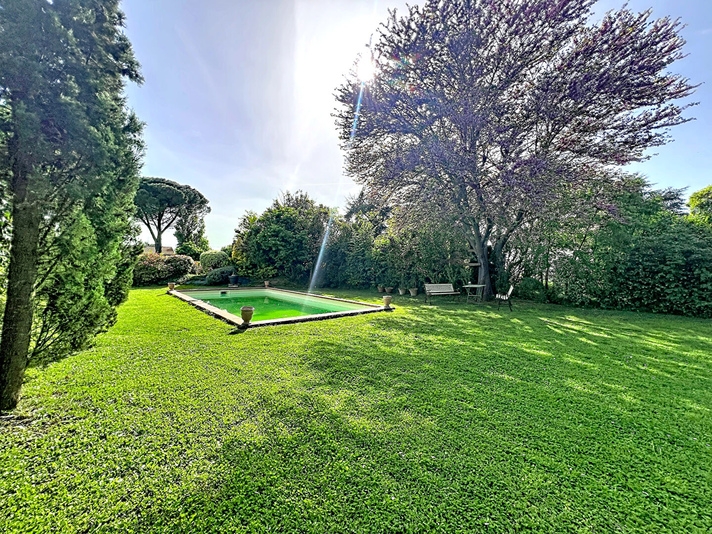 De plain pied elle nous offre un double séjour de charme avec sa belle cheminée, donnant sur une grande terrasse lumineuse et un charmant jardin avec piscine, une spacieuse cuisine indépendante, un cellier, et deux chambres.