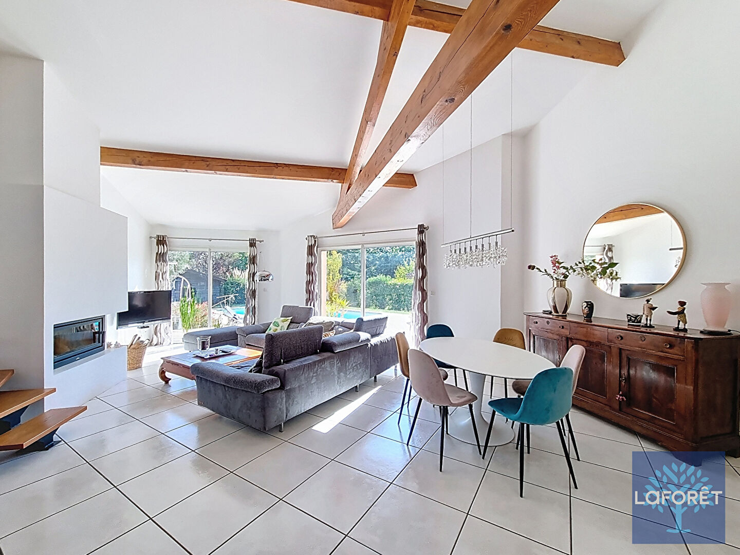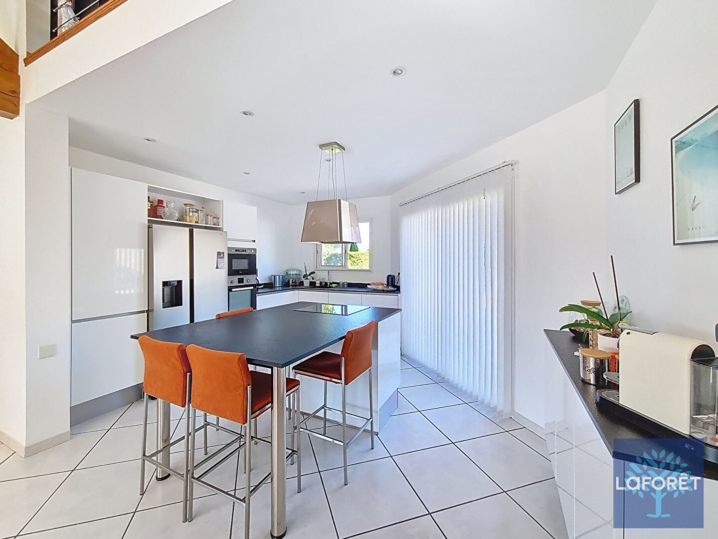 Dès l'entrée, vous serez charmés par un séjour cathédrale spacieux et lumineux, mis en valeur par de grandes baies vitrées ouvrant sur la terrasse, idéale pour les moments de détente en extérieur.
