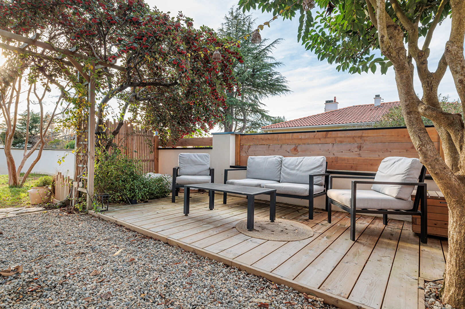 À l'extérieur, vous profiterez d'un jardin exploitable et piscinable, idéal pour les moments en famille ou entre amis.