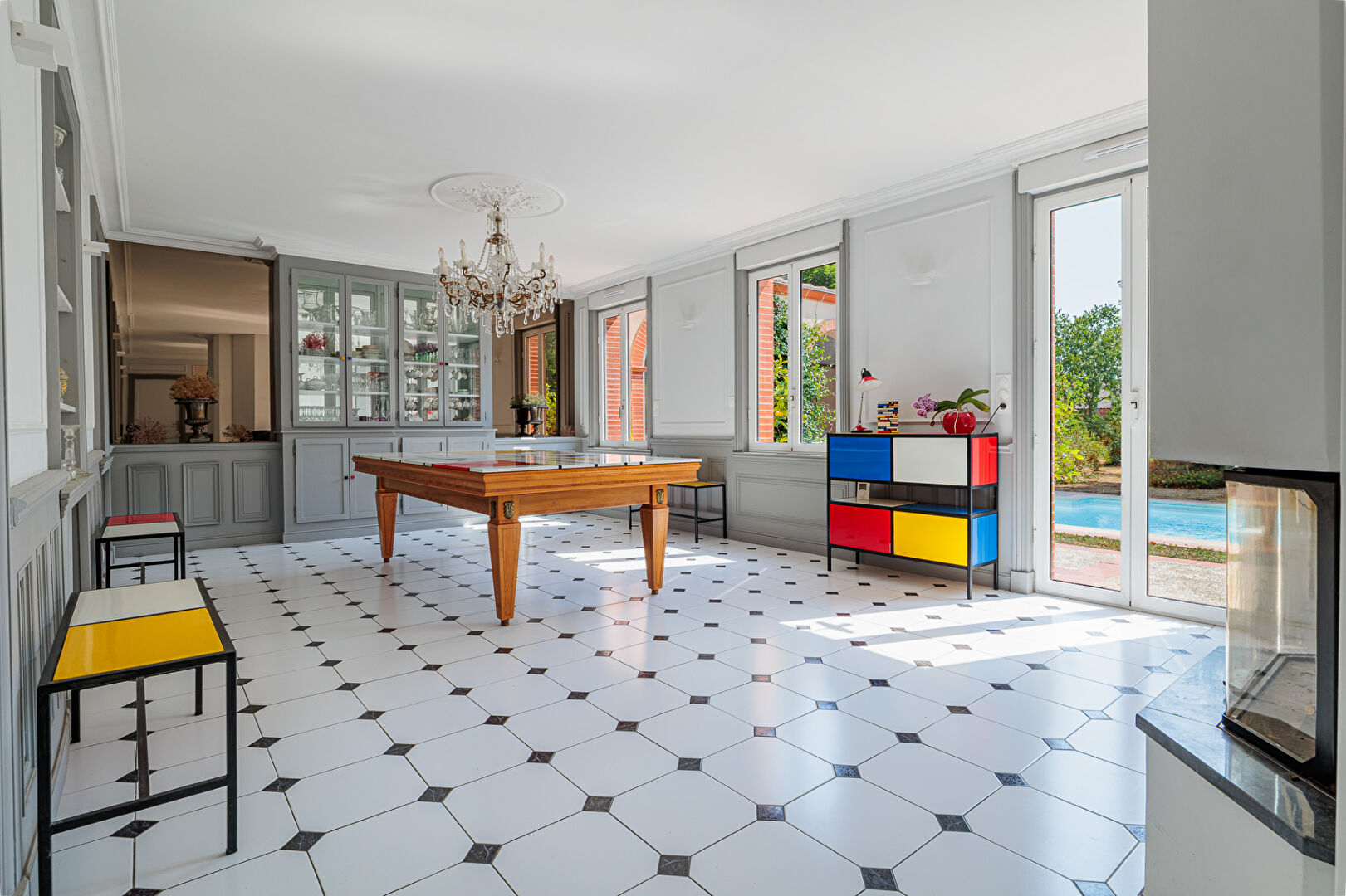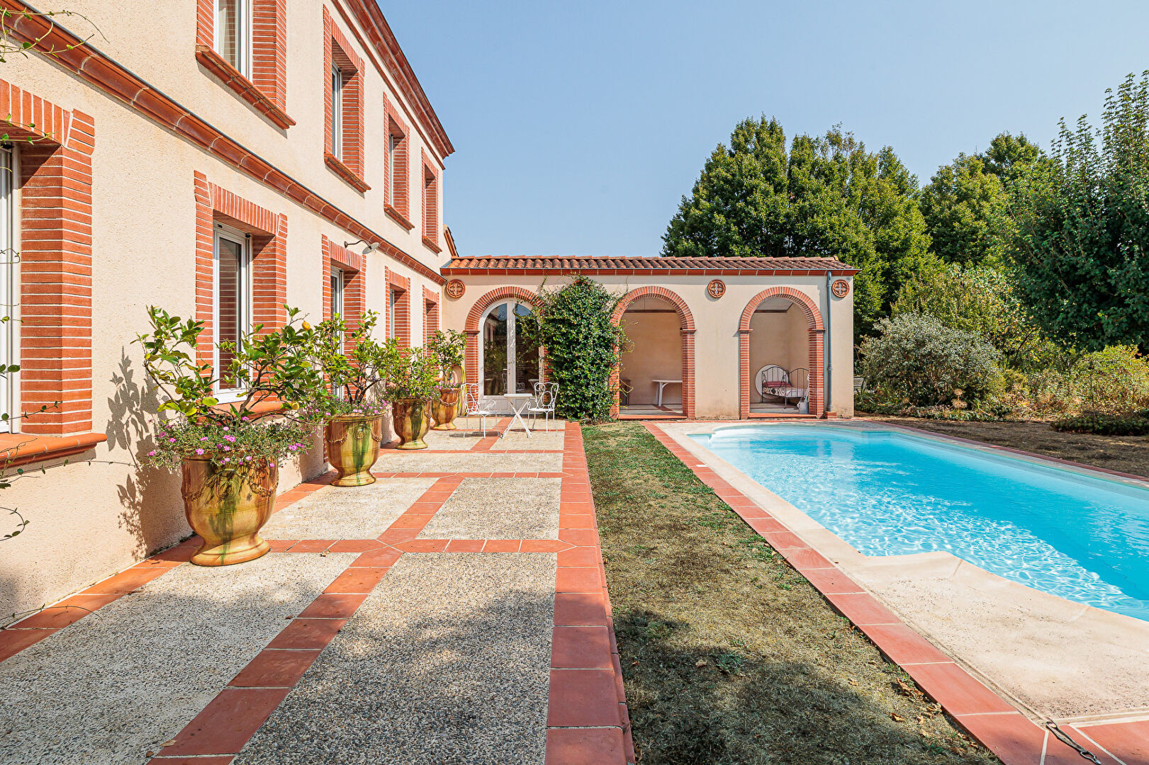 Cette maison de style lauragais allie le cachet de l'ancien et le confort de la modernité : l'entrée s'ouvre sur un escalier de marbre, avec au rez-de-chaussée une cuisine indépendante et son arrière-cuisine/buanderie, un bureau avec placards, une chambre, puis un double séjour lumineux avec cheminée donnant sur la terrasse , la piscine et le jardin.