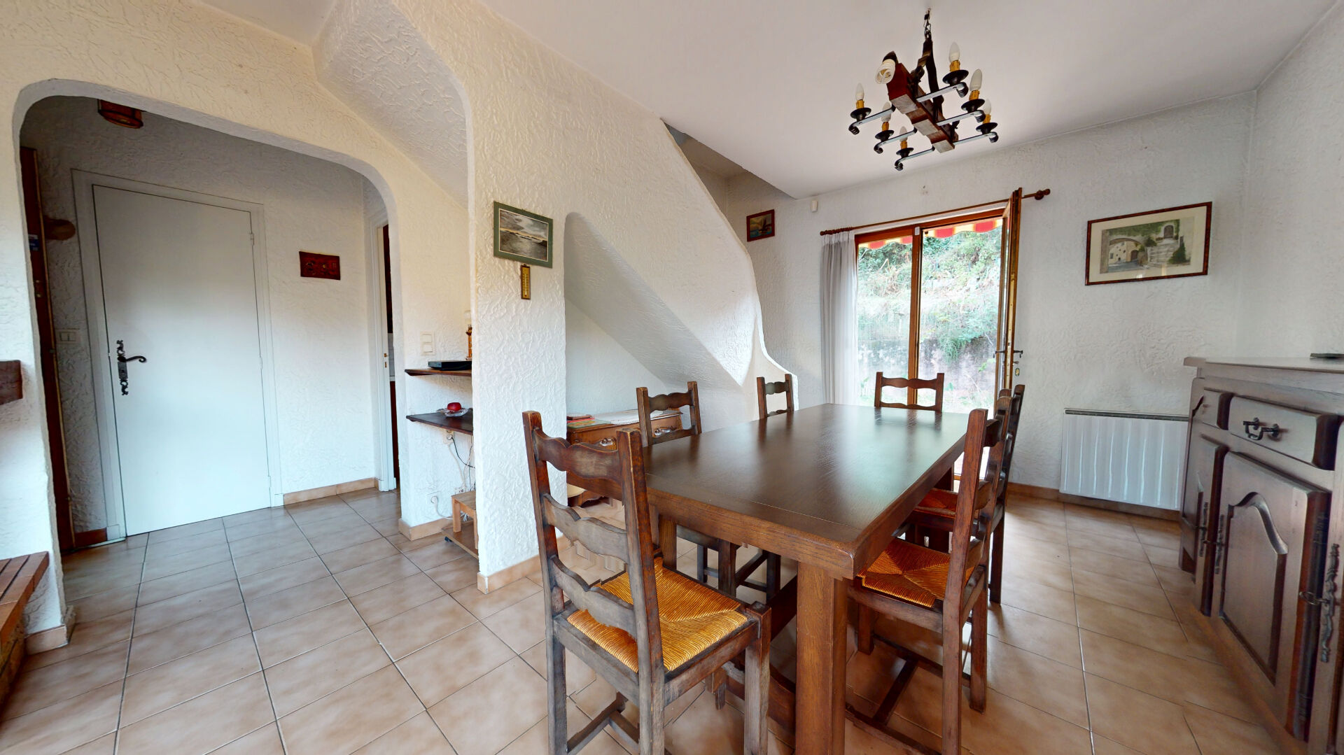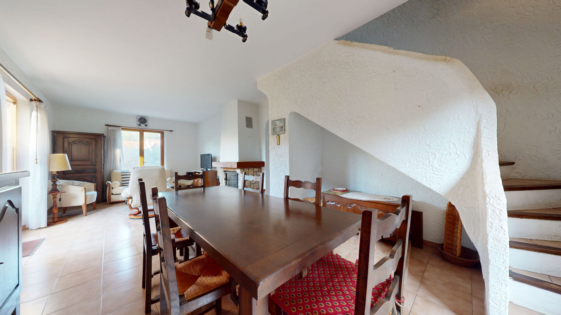 - De plain pied : véranda, agréable séjour traversant avec cheminée avec insert, cuisine indépendante aménagée, buanderie et wc.