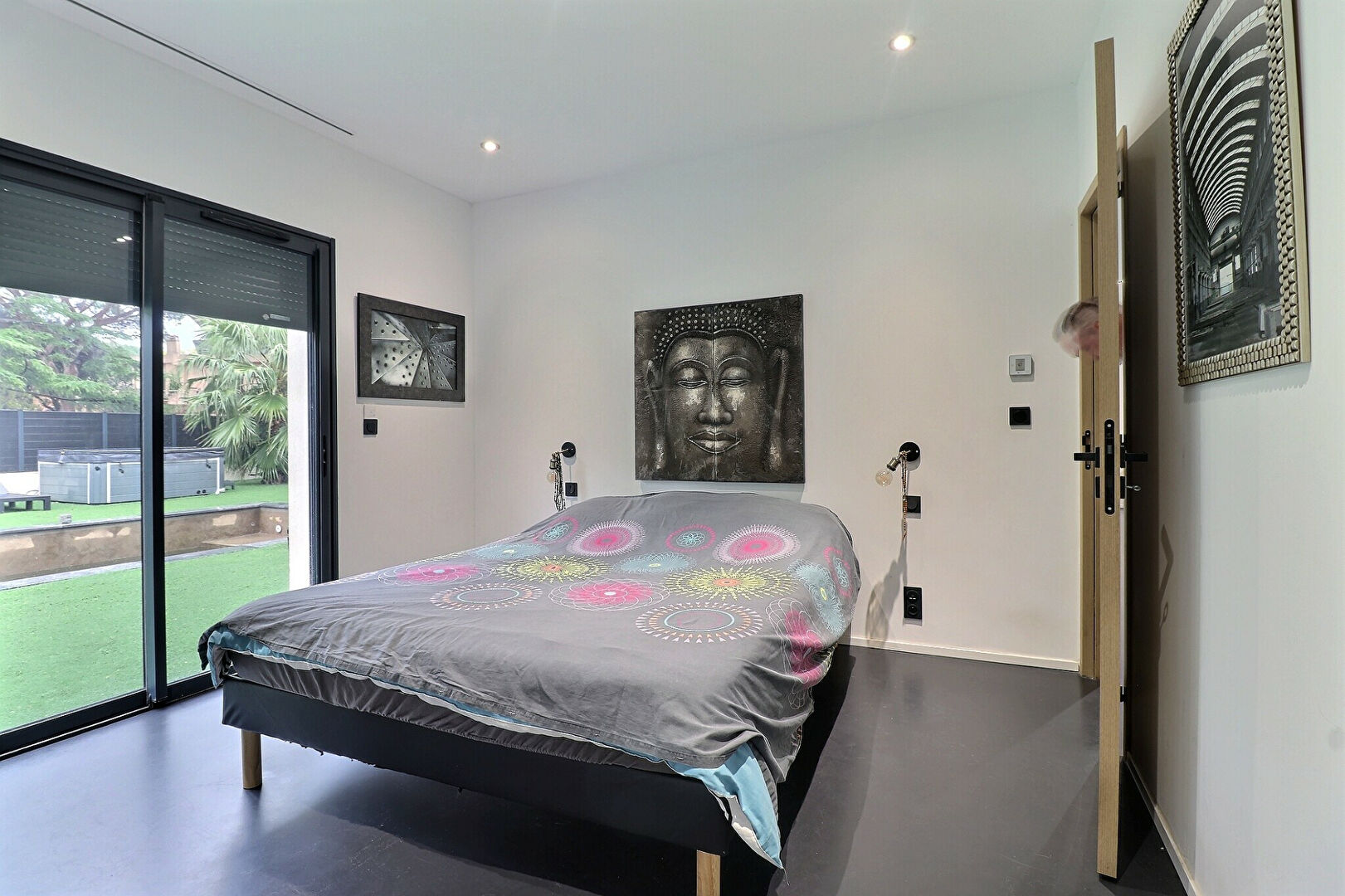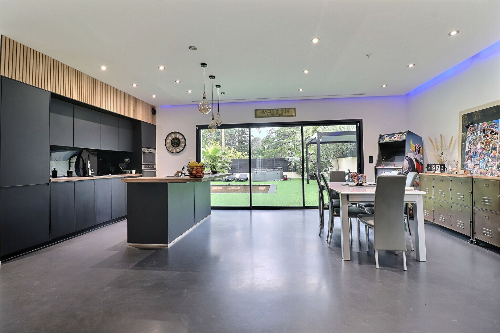 Les extérieurs, soigneusement aménagés, offrent un véritable espace de détente avec jacuzzi, pergola bioclimatique et jardin paysager.