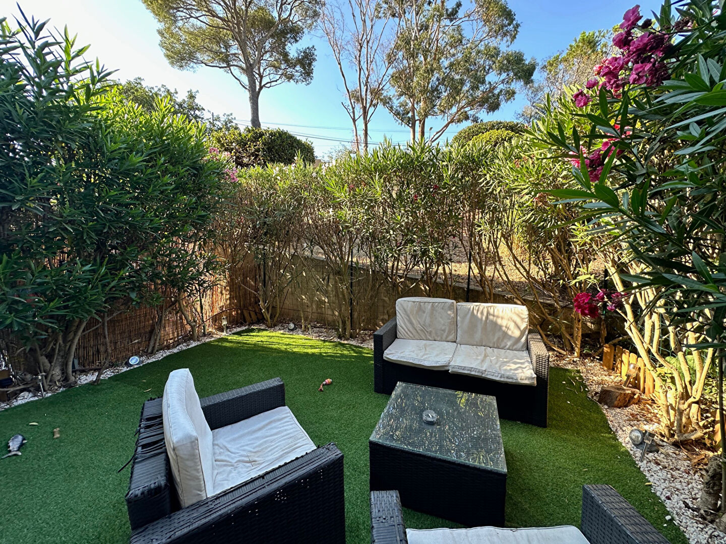 À quelques minutes en voiture, vous rejoignez le centre-ville de Saint-Raphaël, le port, les plages de sable fin et la mer, ainsi que les commerces de proximité (boulangerie, épicerie, pharmacie, médecins). Les grands supermarchés, marchés provençaux et centres commerciaux sont accessibles à moins de 5 km.