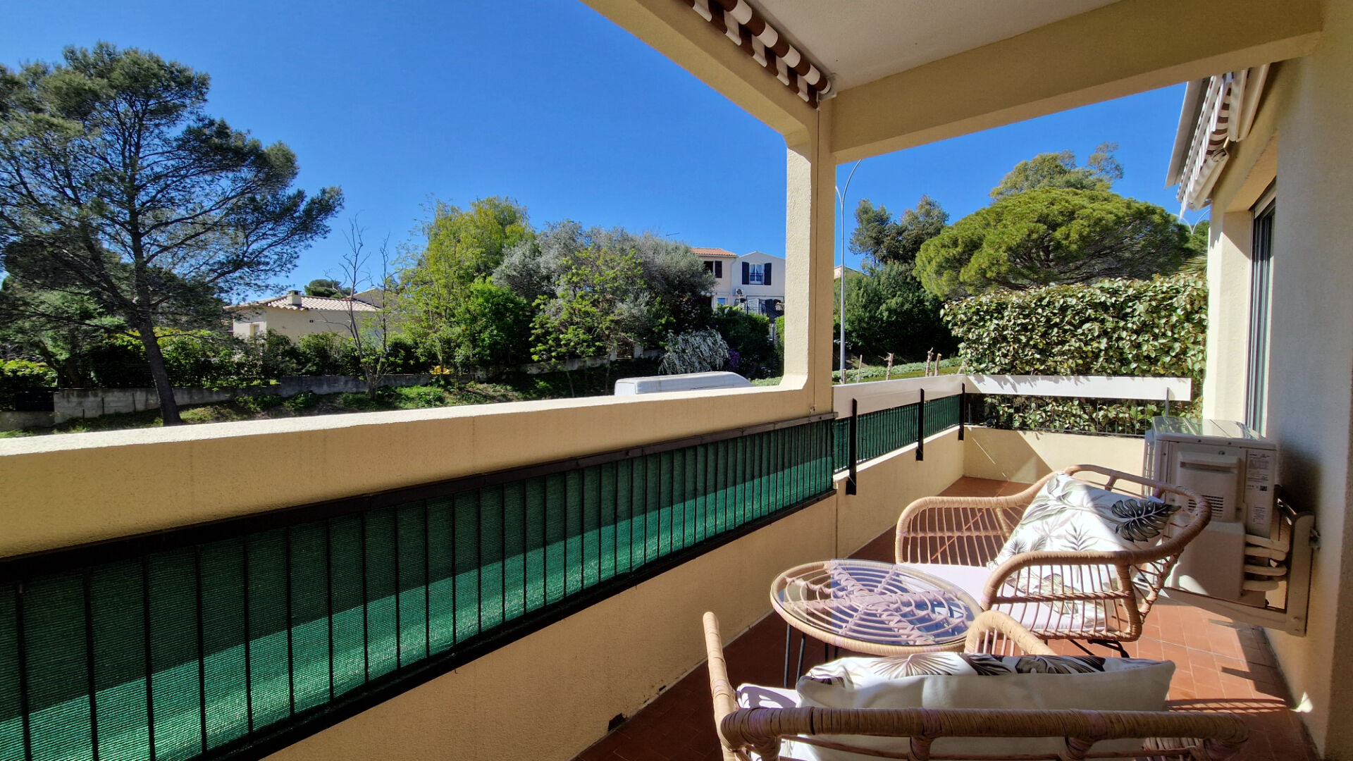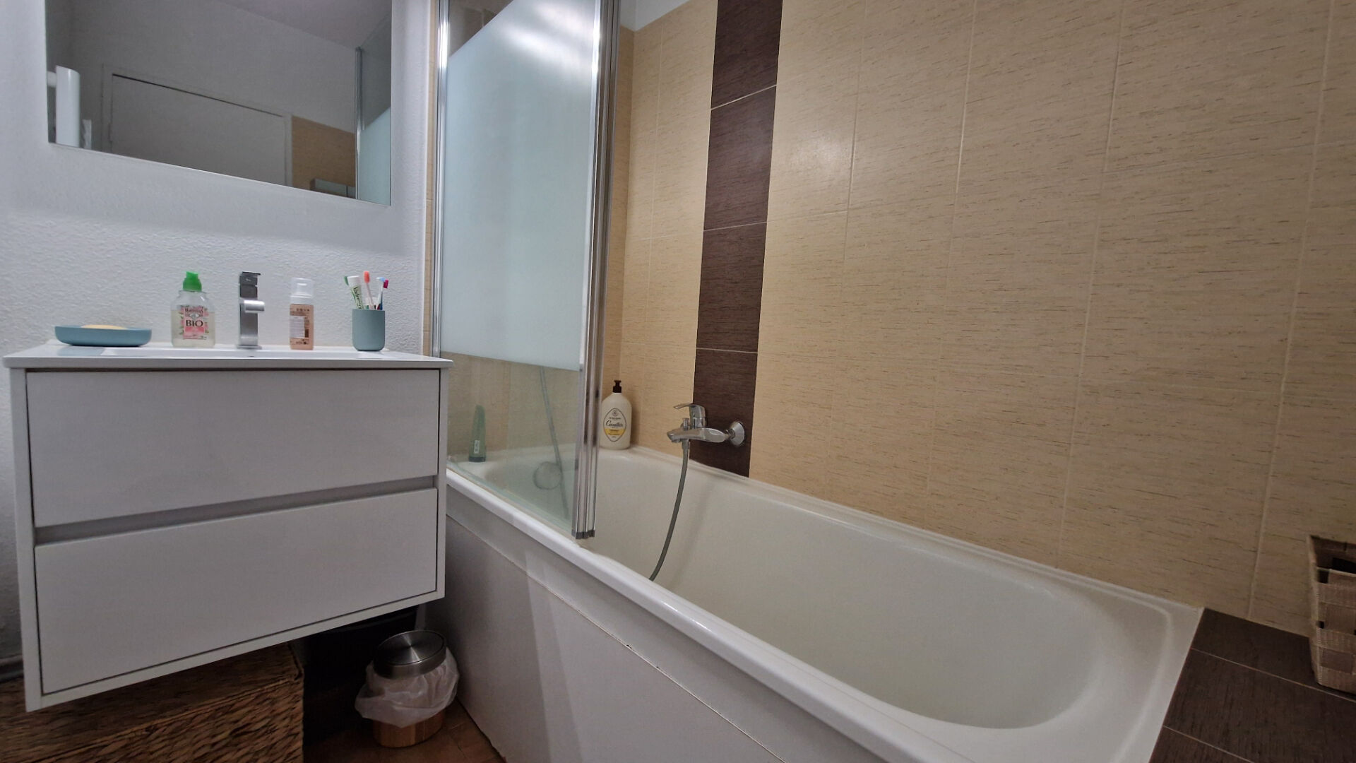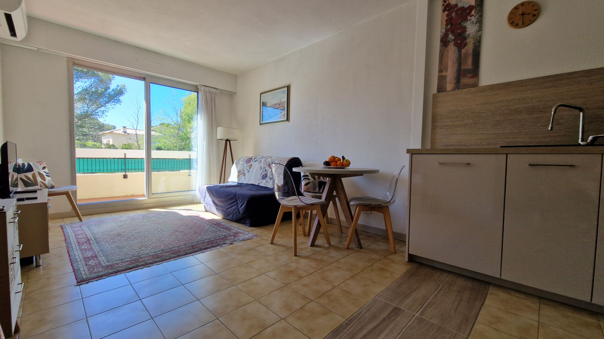 L'espace nuit comprend une chambre confortable avec rangements intégrés, ainsi qu'une salle d'eau moderne. L'appartement bénéficie également de la climatisation réversible pour un confort optimal en toute saison.