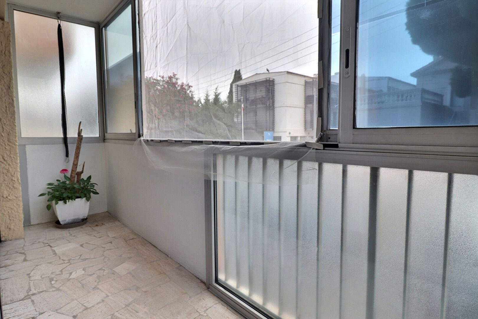 Les deux chambres s'ouvrent sur une loggia fermée, offrant un espace calme et agréable. L'une d'elles dispose d'une grande armoire intégrée.