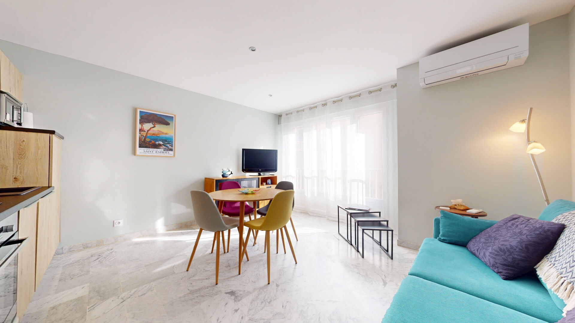 Il se compose d'un séjour lumineux avec cuisine ouverte équipée, de deux chambres, d'une salle d'eau moderne et d'un wc séparé. Vous profiterez de prestations de qualité : climatisation réversible, menuiseries PVC double vitrage, volets roulants électriques,... aucun travaux à prévoir. L'appartement peut être vendu meublé.