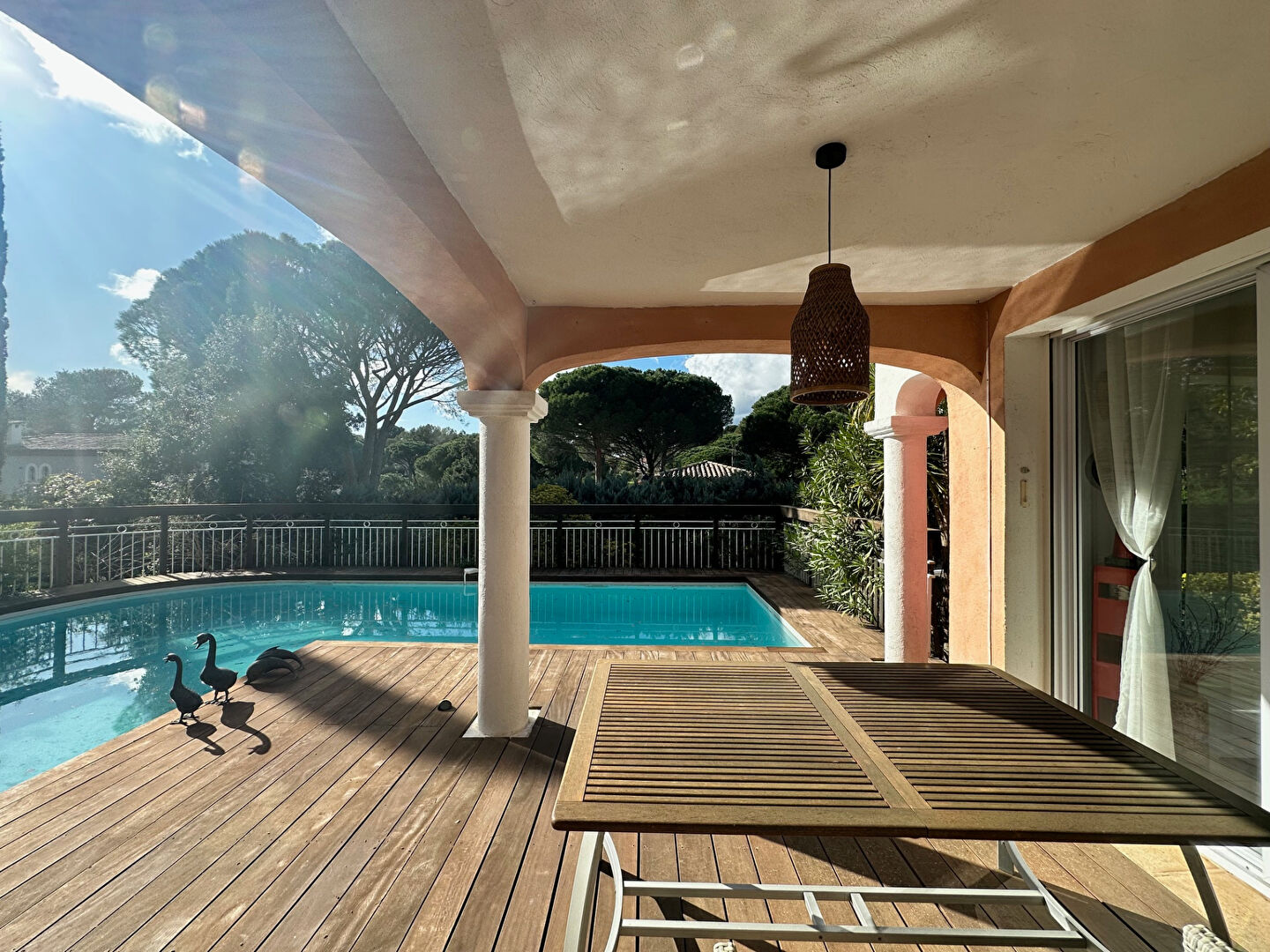 Avec ses 140 m² habitables, cette villa en impasse offre un cadre de vie exceptionnel. Elle comprend une belle entrée, un séjour double lumineux donnant accès direct à l'extérieur, une cuisine moderne et fonctionnelle, 4 chambres, 3 salles d'eau, 3 WC, un bureau, une buanderie ainsi qu'une cave. Le tout implanté sur un terrain de plus de 800m² - en position dominante - bénéficiant d'une belle piscine de forme libre, idéal pour se détendre en famille ou entre amis. Ne manquez pas cette opportunité unique. Contactez votre agence Laforet Immobilier de Saint Raphael dès aujourd'hui pour organiser une visite