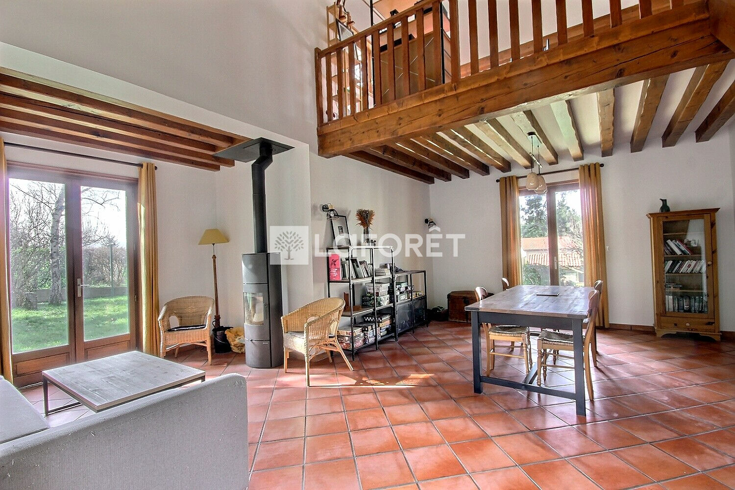 De bonne construction traditionnelle, vous découvrirez un vaste séjour lumineux, agrémenté par un poêle et enjolivé par un joli plafond à la Française. Sa cuisine se prolonge sur une terrasse à l'abri des regards.