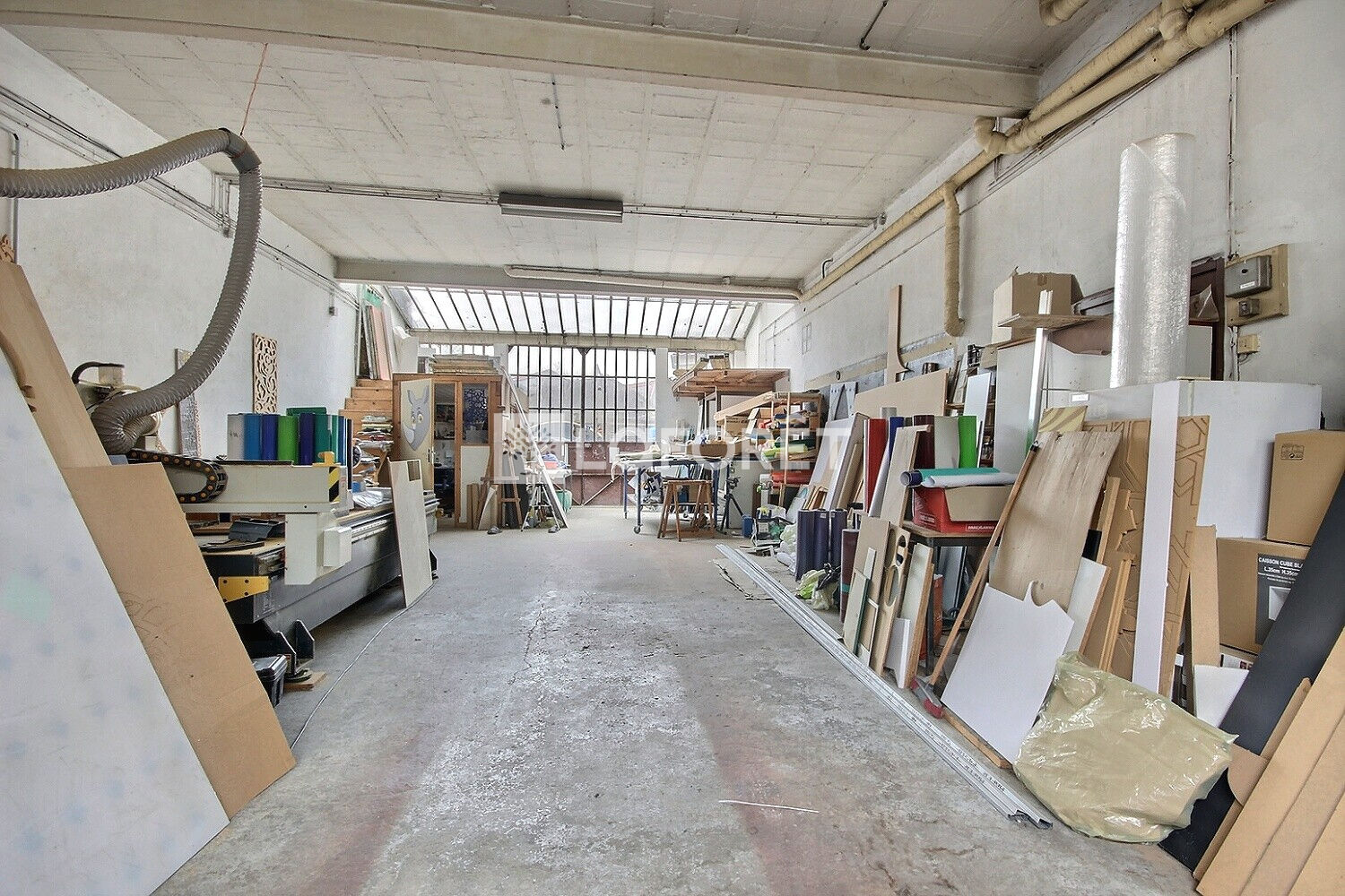Au rez-de-chaussée se trouvent un vaste local à usage industriel, loué sous bail commercial, prolongé par un terrain clos de murs d'environ 150 m², ainsi qu'une annexe d'environ 11 m² pouvant faire office de dépendance ou de bureau indépendant.