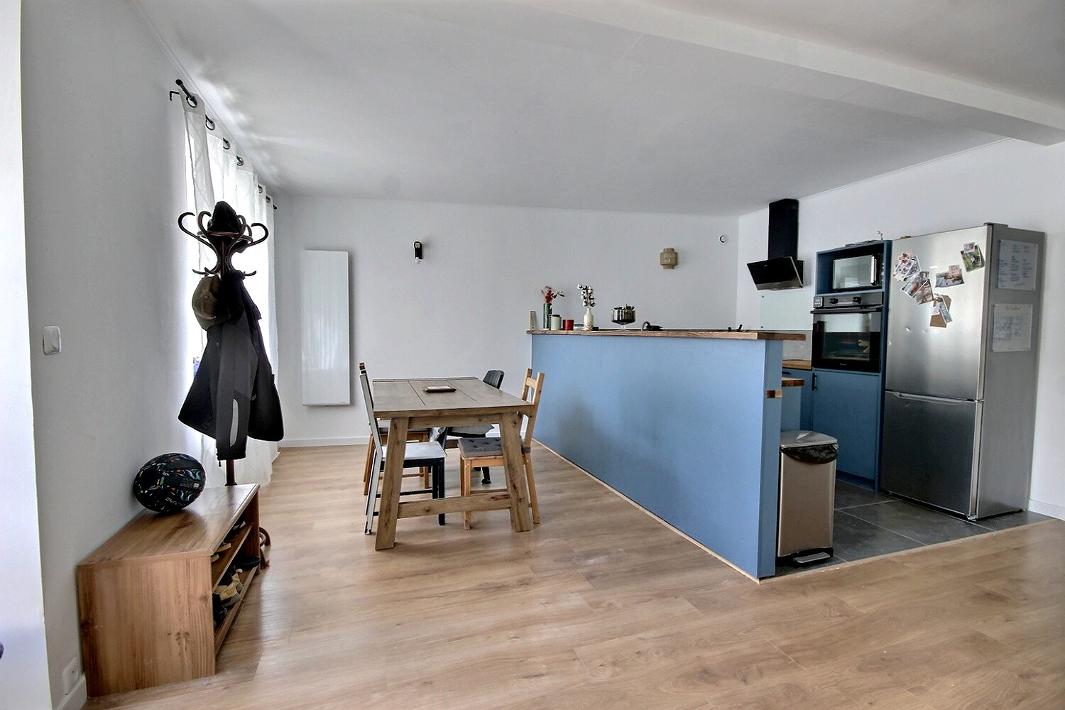 Au rez-de-chaussée, vous serez séduit par une grande pièce de vie conviviale avec une cuisine équipée ouverte sur le séjour, créant un bel espace à vivre lumineux. Une buanderie ainsi qu'un WC complètent ce niveau.