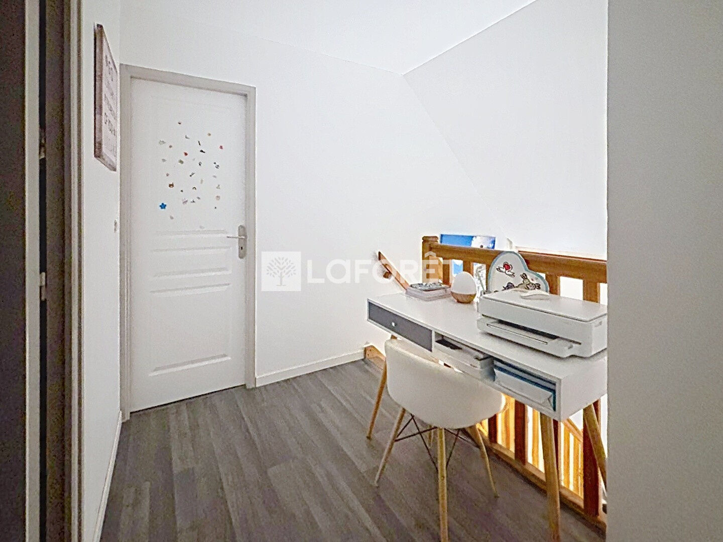 L'étage dessert 3 chambres, une salle de jeux pouvant faire office de bureau, une salle de bains, et un WC.