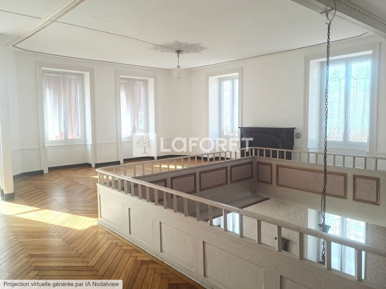 Au rez-de-chaussée, vous trouverez une pièce d'entrée cuisine, deux pièces, une salle d'eau et un WC, une cave, une pièce de vie de plus de 62 m² qui correspondait au lieu de projection !