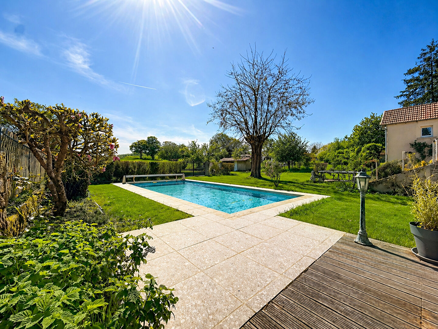 Un terrain clos et arboré, idéal pour profiter des beaux jours en toute intimité