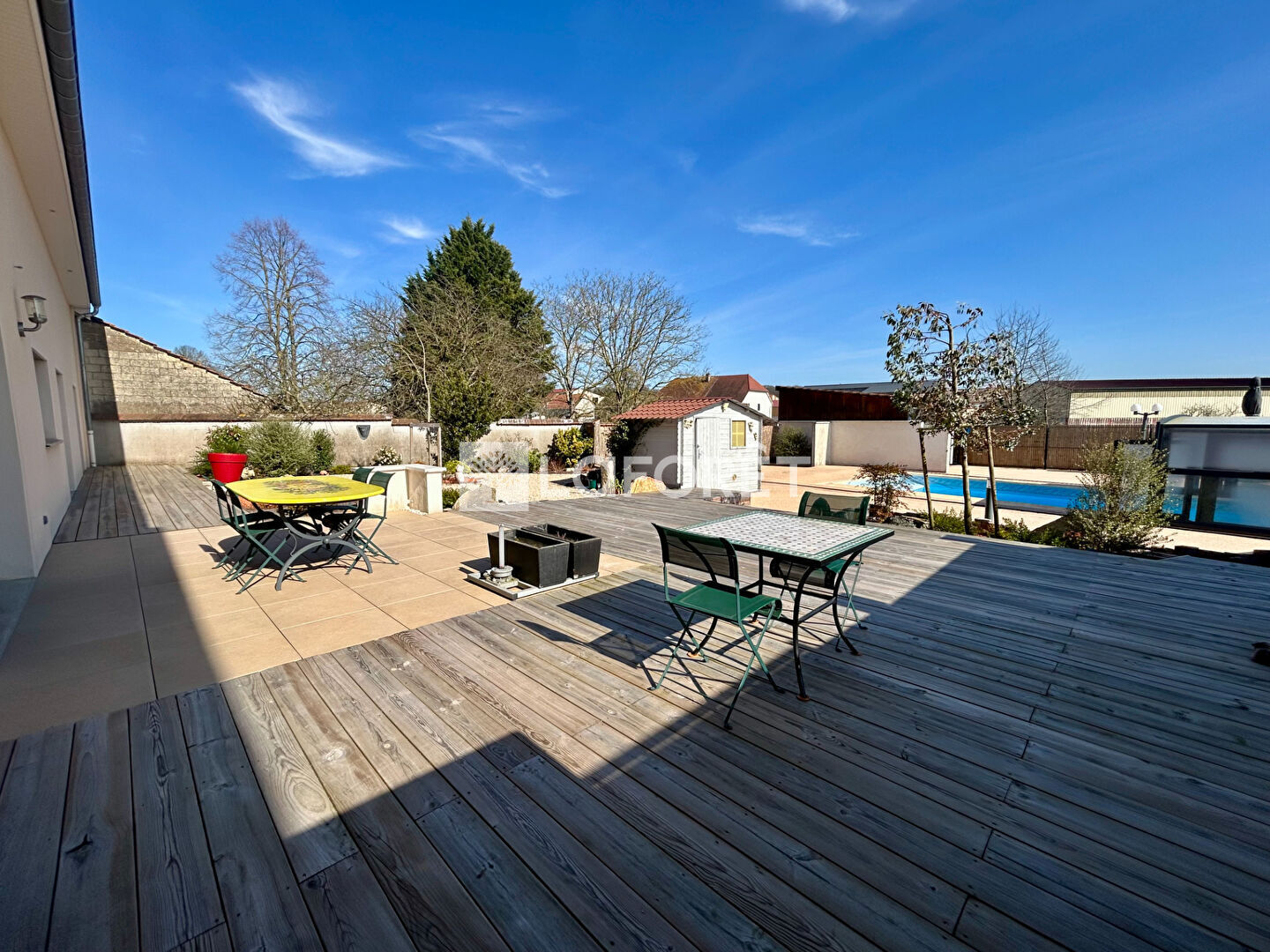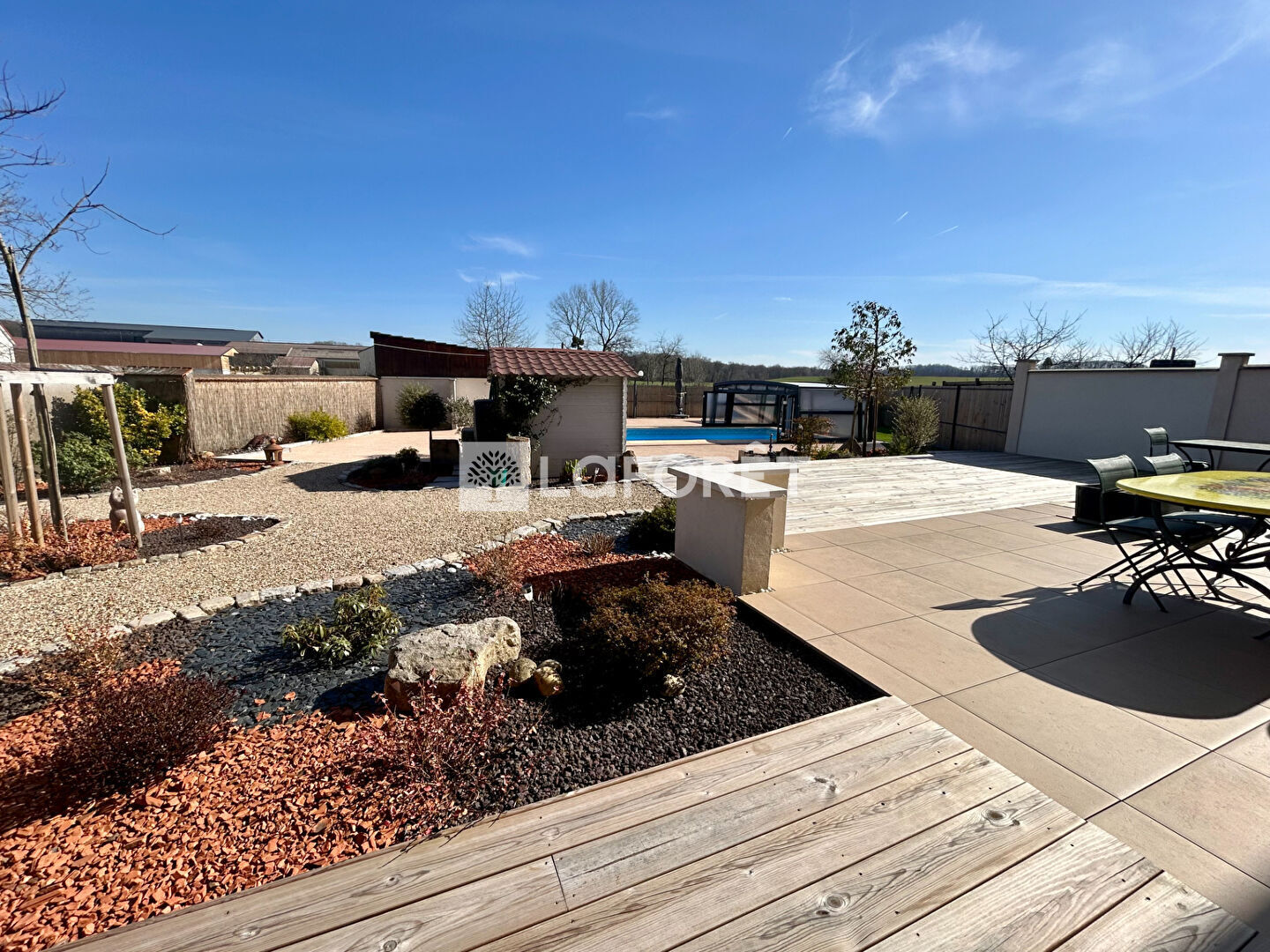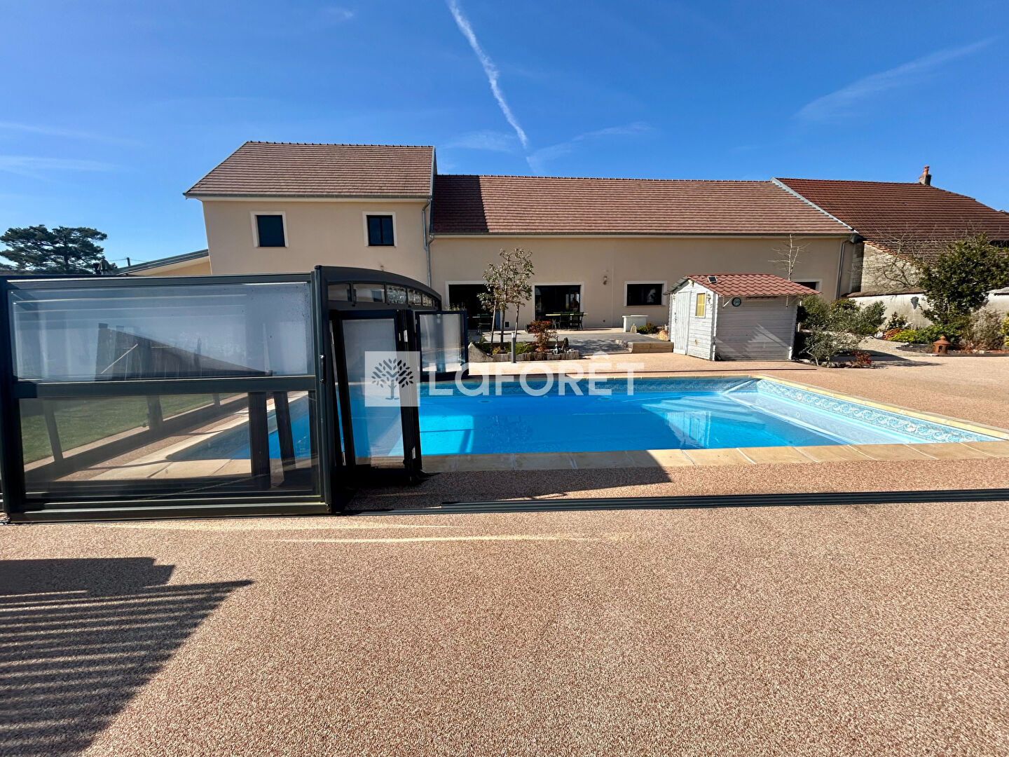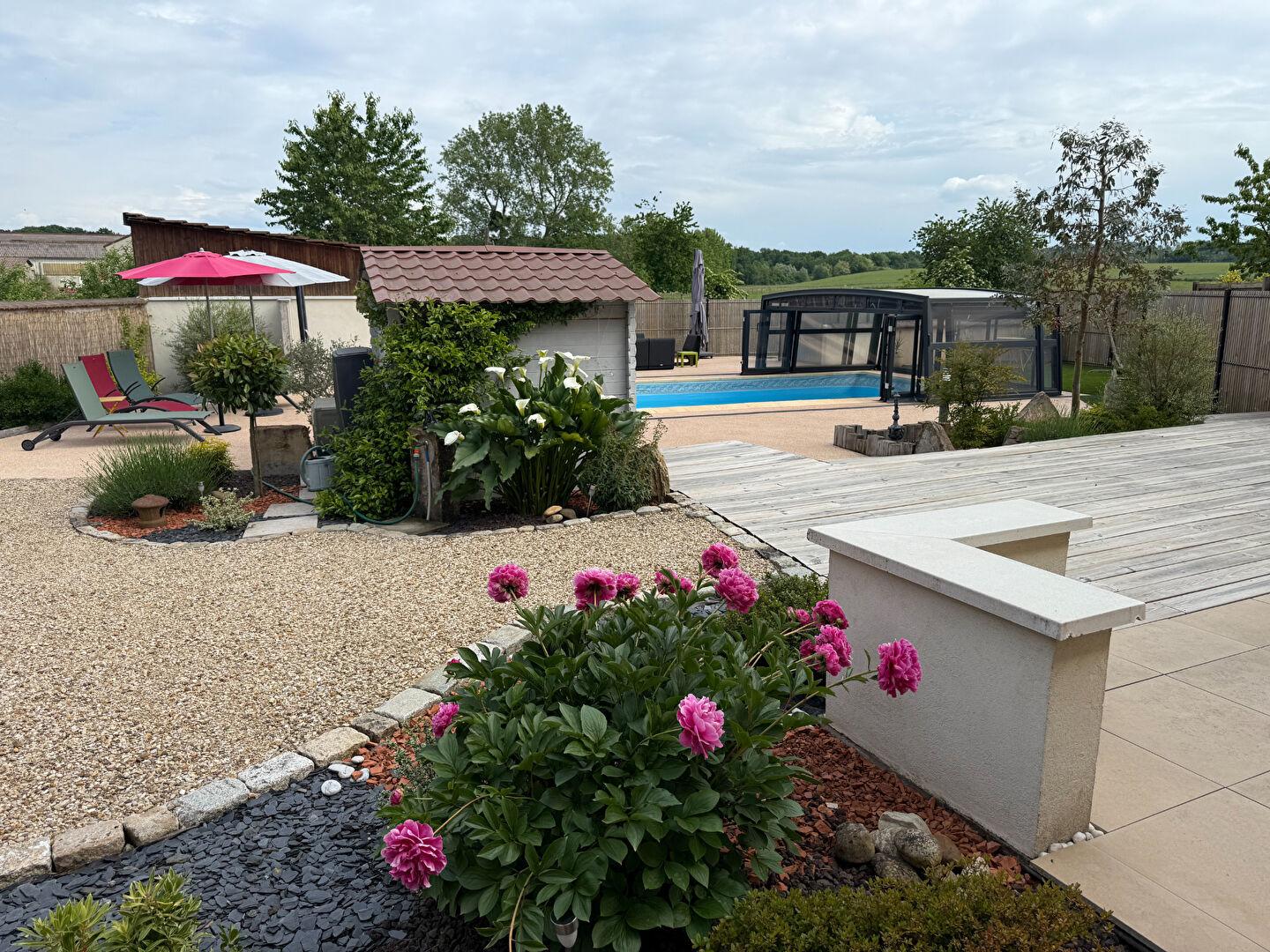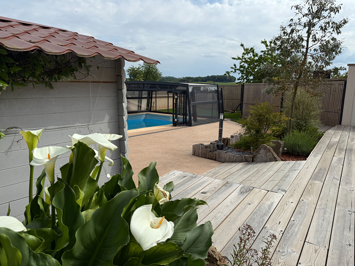 Le jardin, soigneusement aménagé, abrite une piscine couverte et chauffée, idéal pour se détendre en toutes saisons.
