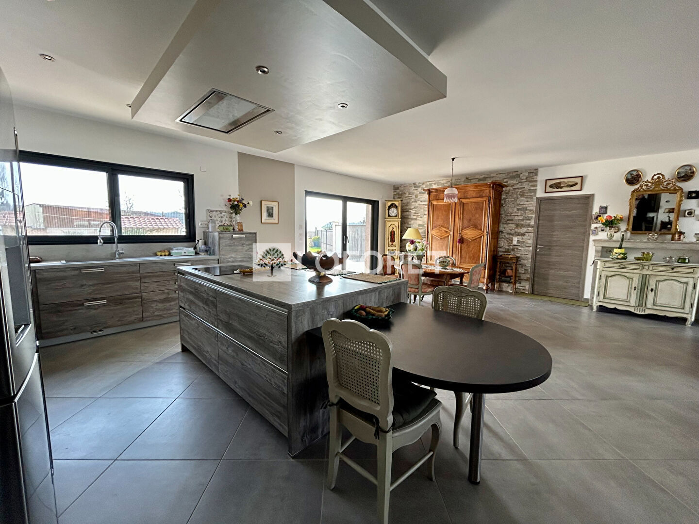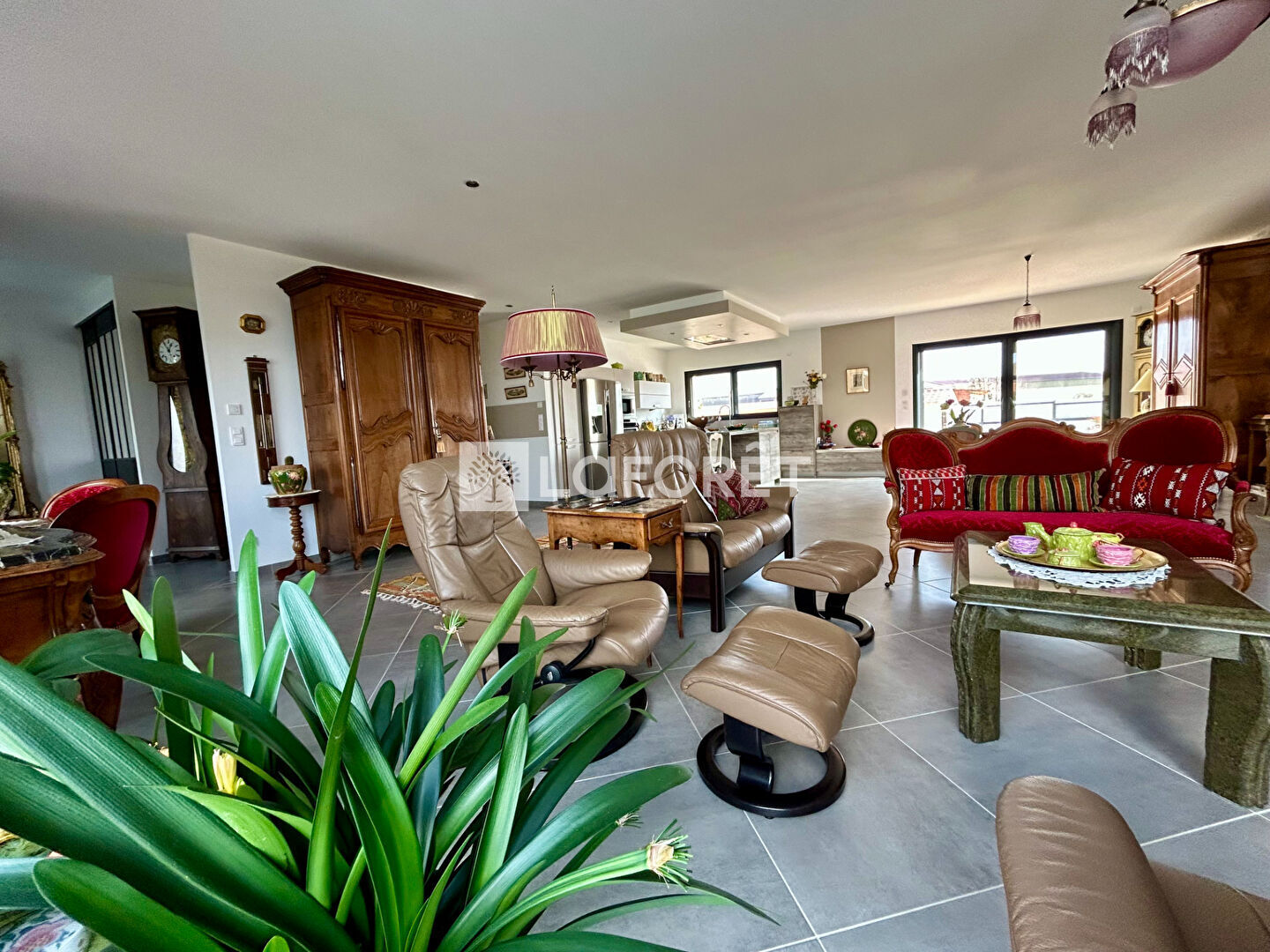 Elle comprend : une cuisine équipée ouverte sur une grande pièce de vie d'environ 90m2, trois chambres dont une grande suite parentale avec salle d'eau prIvative, une buanderie, un WC et une salle d'eau. Grand garage.