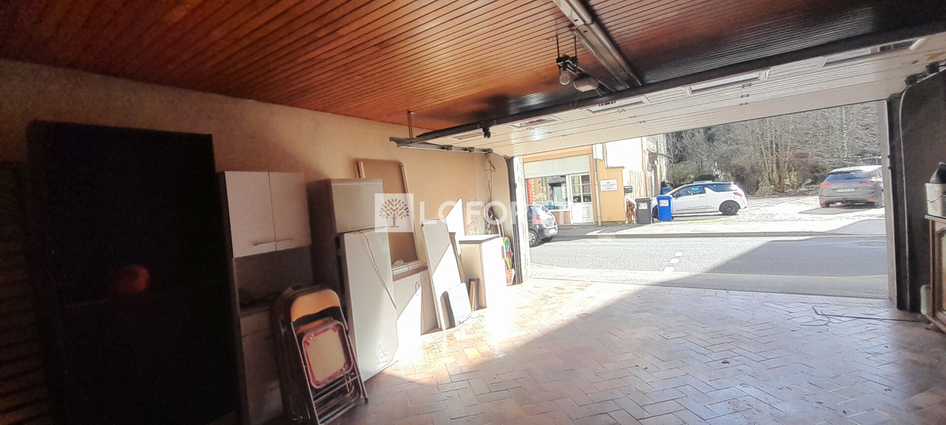Au rez de chaussée: un garage avec porte motorisée, ancien local commercial avec vitrine et arrière boutique, chaufferie et deux pièces.