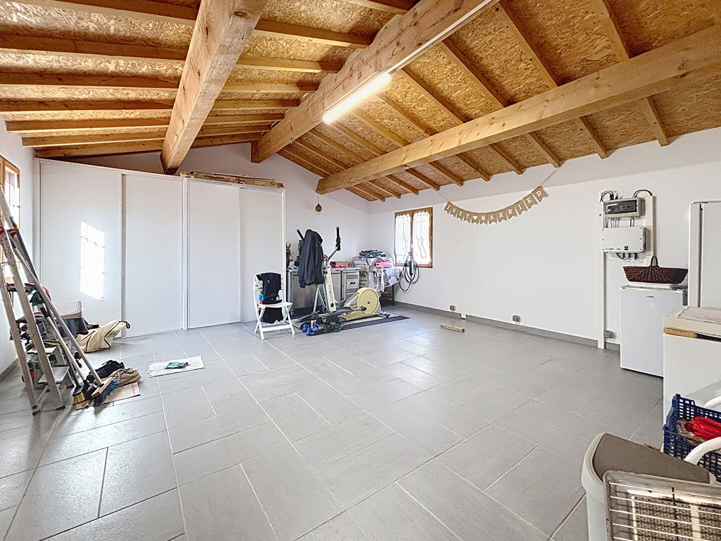 Le plus de cette habitation : un espace de 40m² carrelé et isolé, actuellement déclaré en garage, offrant de multiples possibilités : création de chambres et salle d'eau supplémentaires, aménagement d'un bureau professionnel, ou studio indépendant selon vos besoins.