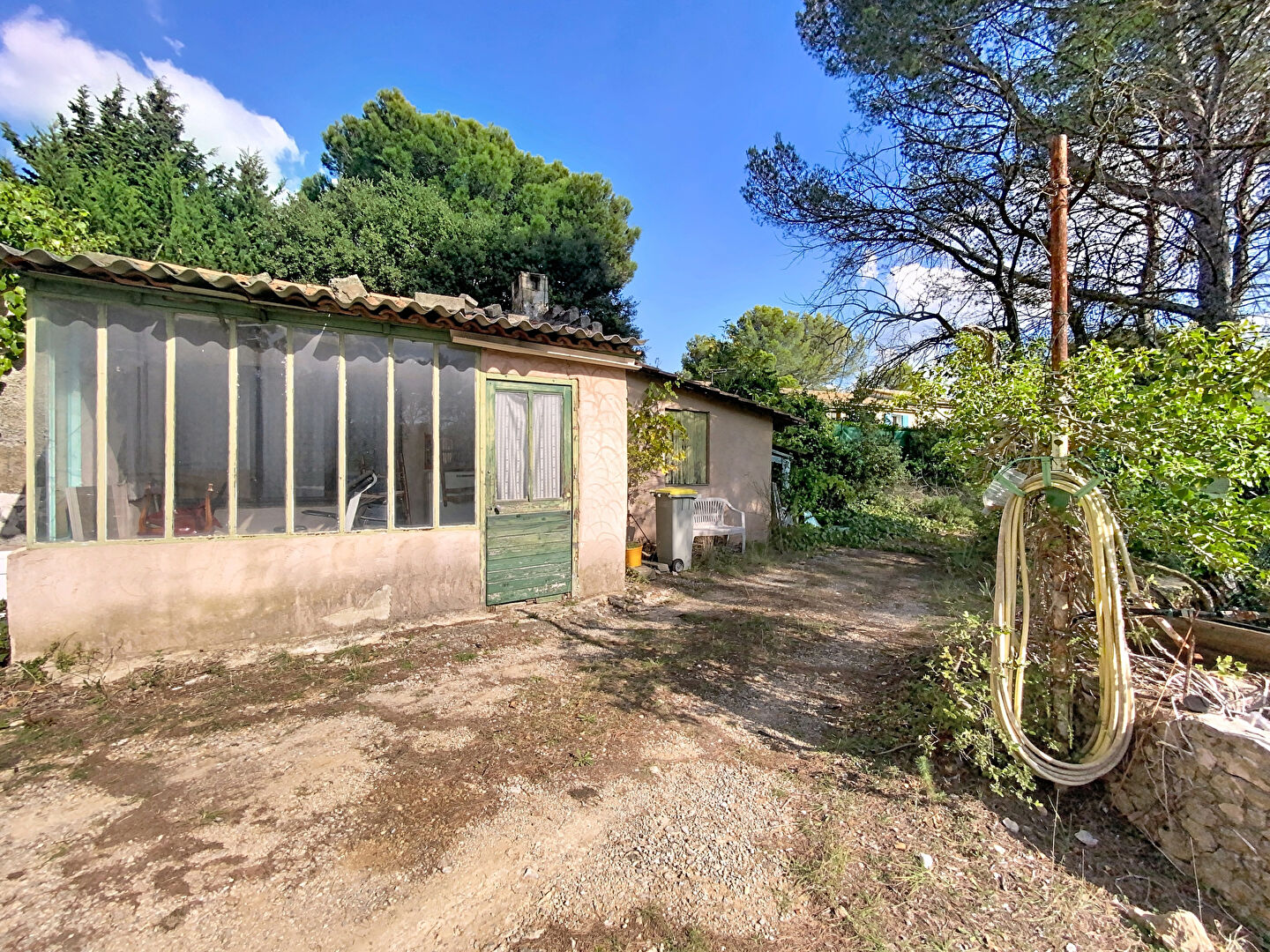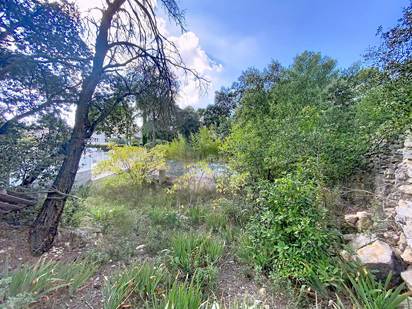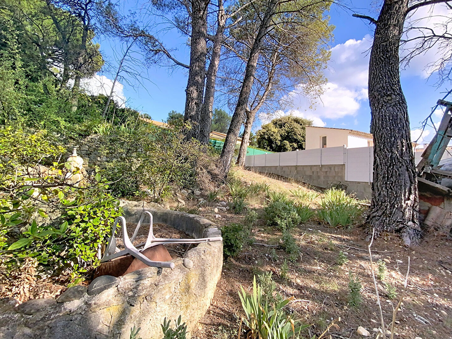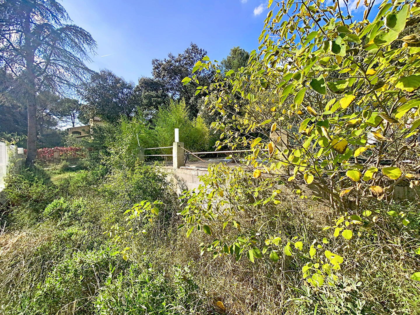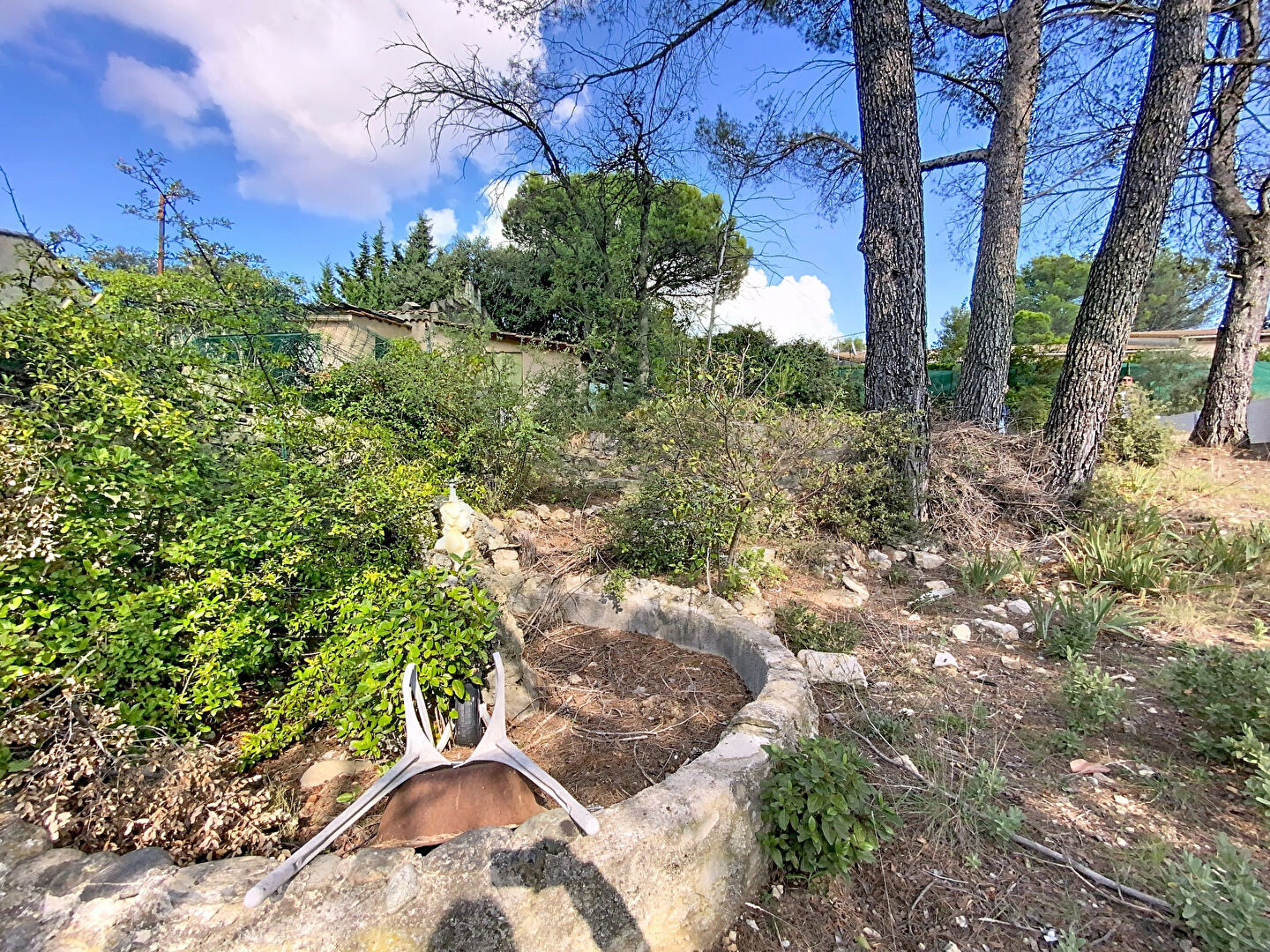 À Lambesc, dans un quartier pavillonnaire calme, terrain à bâtir d'environ 1 000 m², situé en zone UDB, comprenant une maisonnette à réhabiliter ainsi qu'un bassin existant.