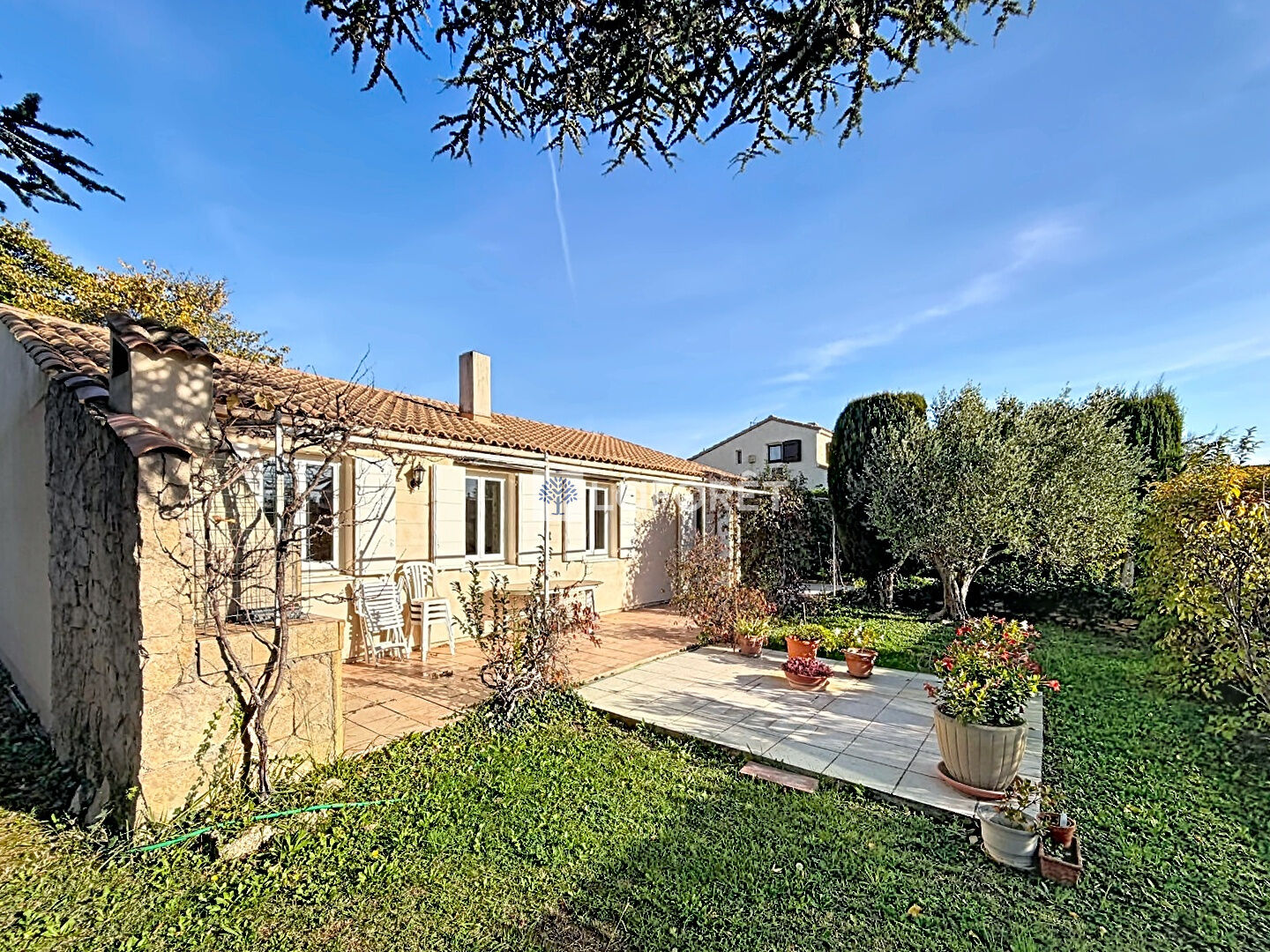 La maison bénéficie de prestations confortables : climatisation réversible, chauffage bois et électrique.