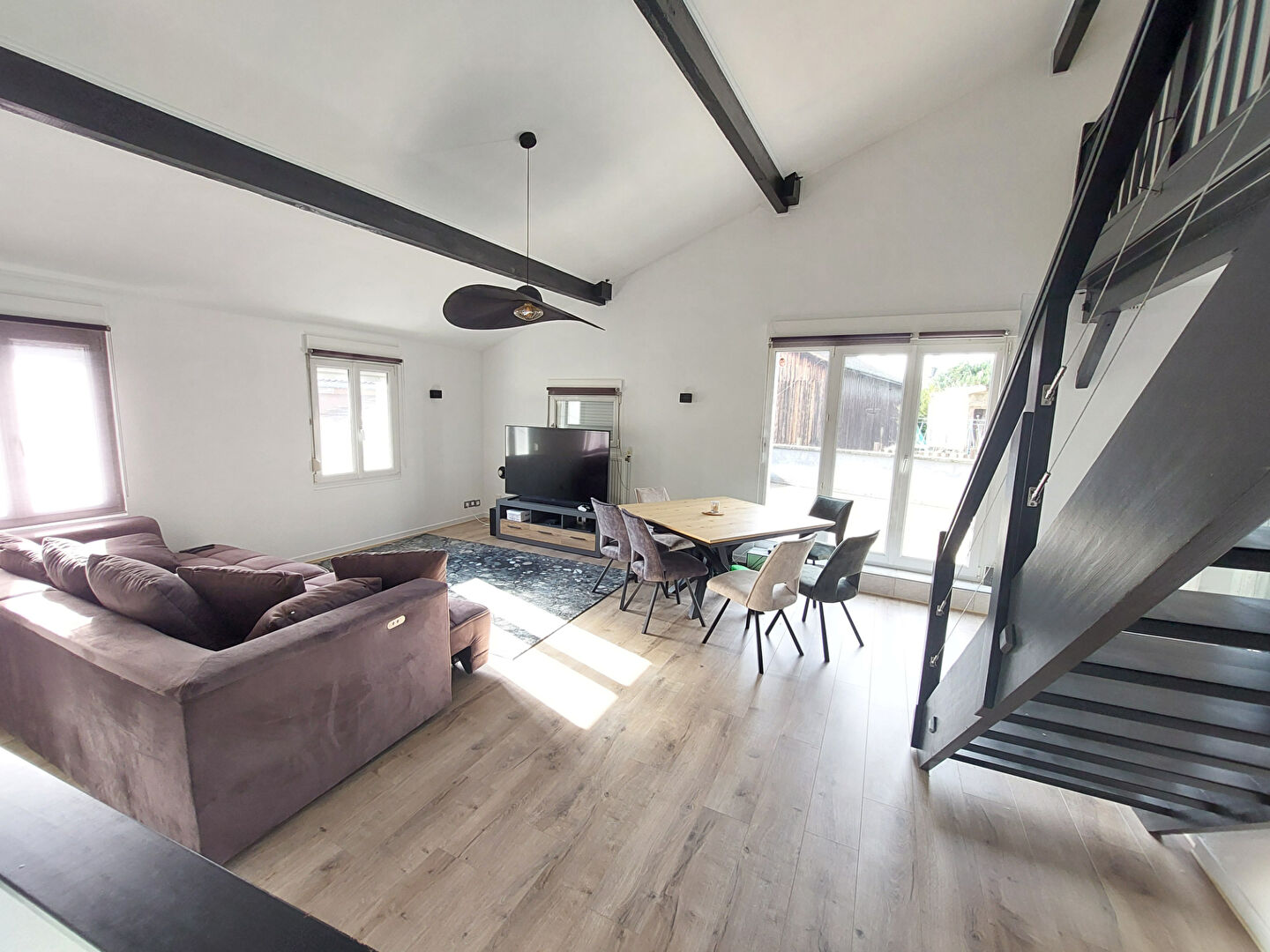 Dans un secteur recherché et proche de toutes commodités, cette maison allie charme et modernité avec un espace de vie spacieux et lumineux, sublimé par ses poutres apparentes et sa belle hauteur sous plafond. Sa terrasse d'environ 30 m² offre un cadre idéal pour profiter des beaux jours en toute tranquillité. La cuisine moderne, entièrement équipée, allie fonctionnalité et convivialité.