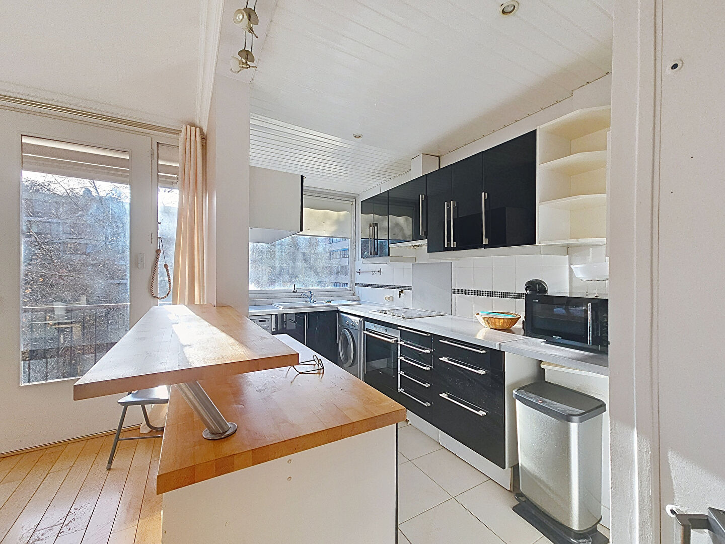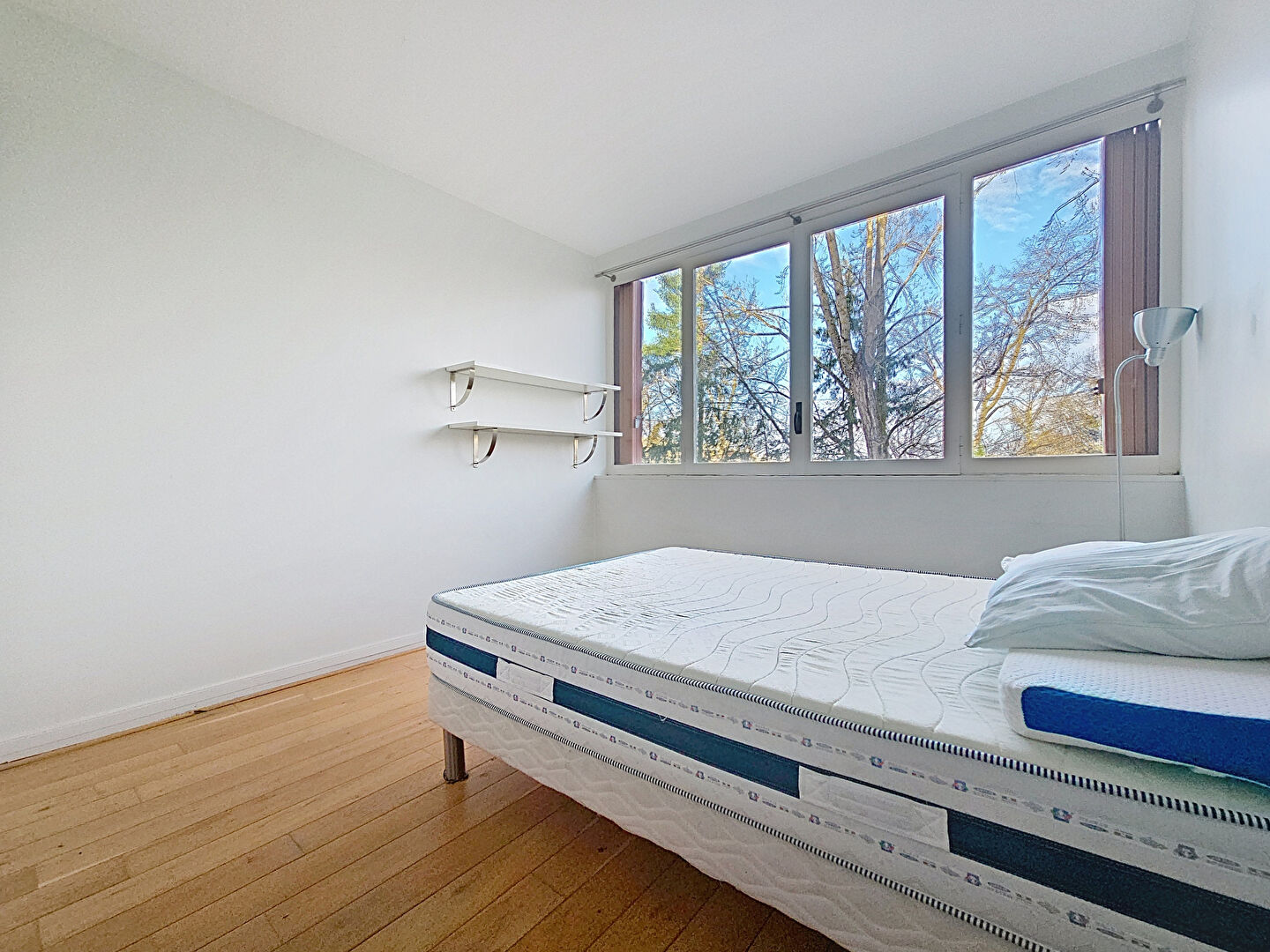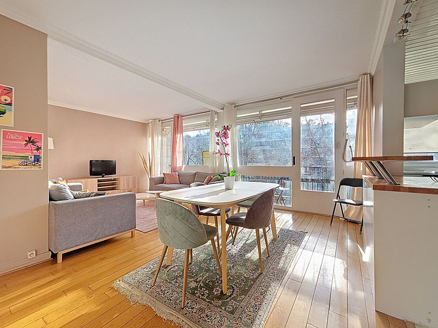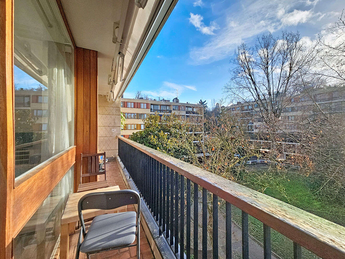 Gand séjour, cuisine ouverte, 2 chambres, balcon orienté sud-ouest sans vis à vis, avec vue sur le parc de la résidence.