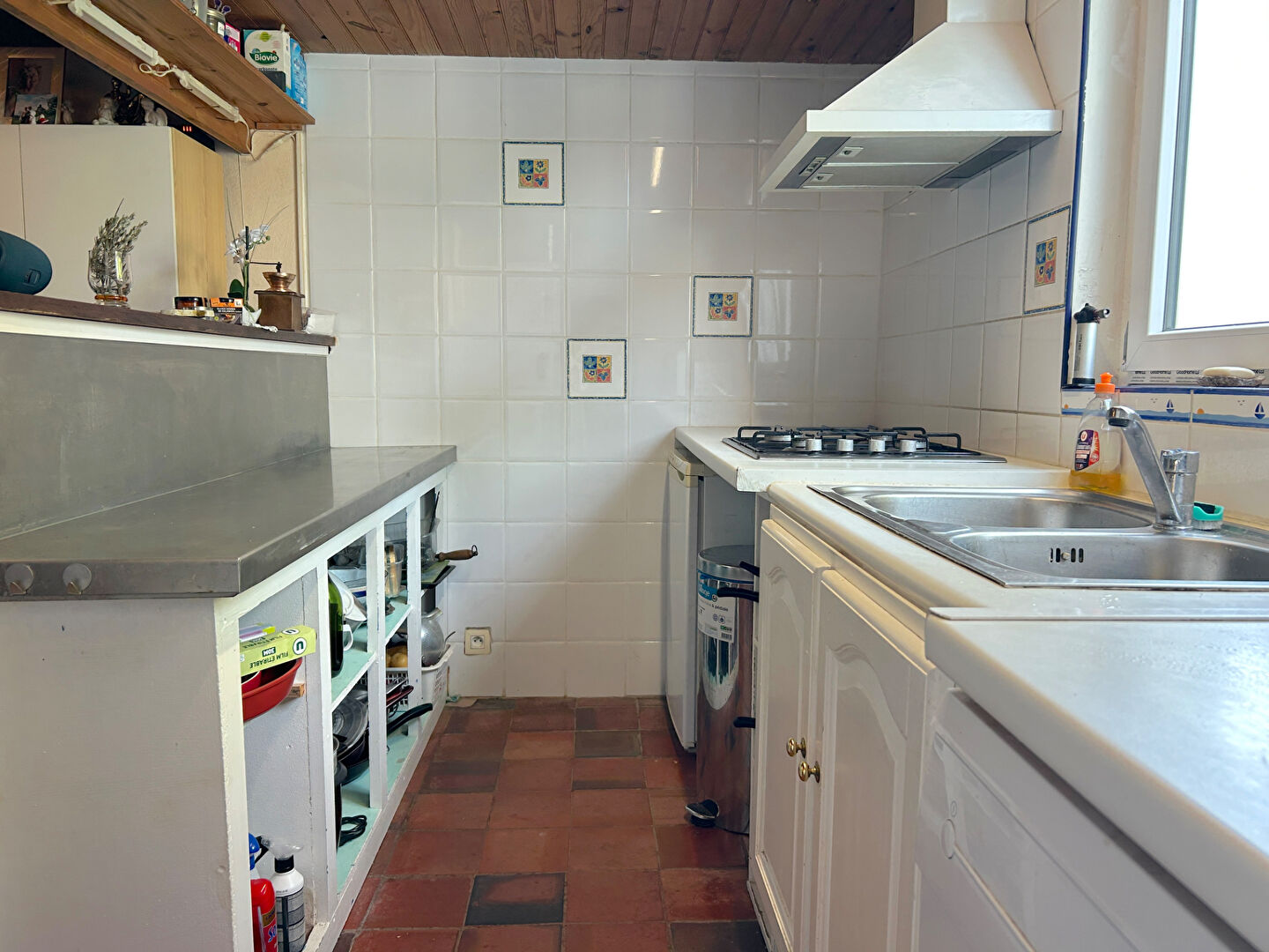 D'une entrée, une cuisine ouverte sur le séjour avec vue et accès sur la terrasse, 2 chambres, une salle de bains, un WC et une mezzanine.