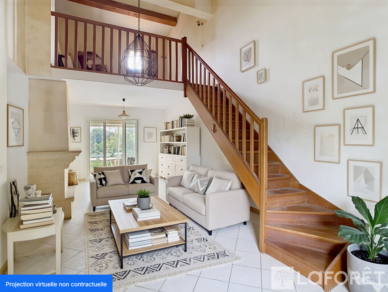 A l'étage, une grande mezzanine de 22 m² peut facilement être aménagée en troisième chambre, bureau ou espace détente selon vos besoins et donne accès à des combles aménagés.