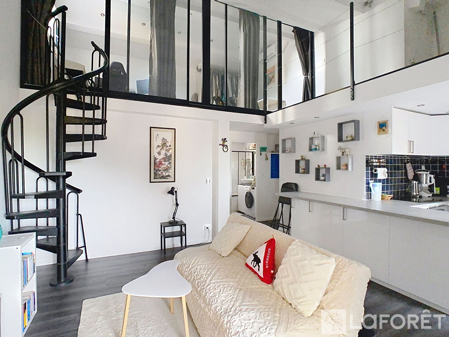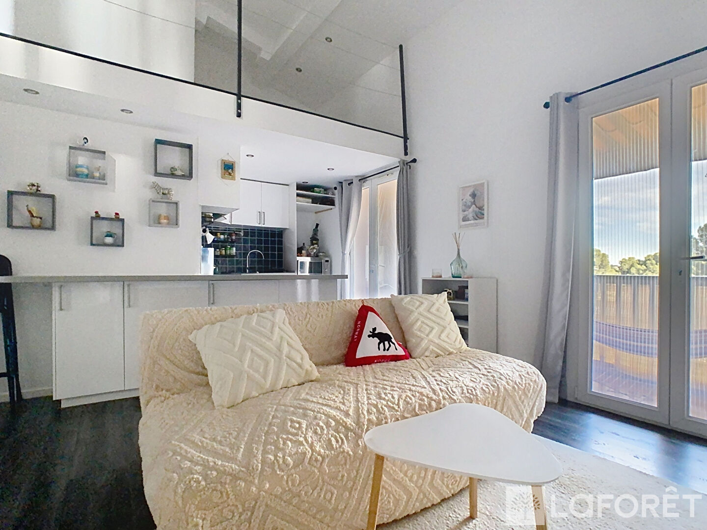 Vous serez séduit dès l'entrée par un hall menant à une lumineuse pièce de vie avec cuisine ouverte, offrant un bel espace convivial. L'appartement comprend également une chambre confortable, une salle de bains, des WC séparés et une mezzanine pouvant servir de deuxième chambre ou de bureau, selon vos besoins.
