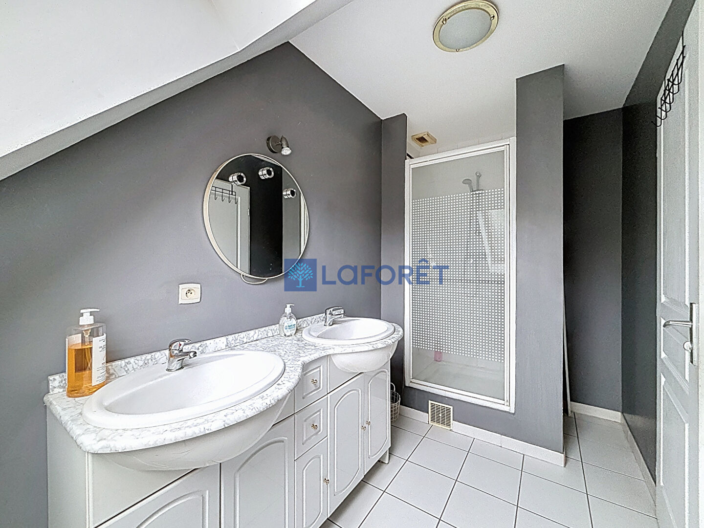 À l'étage, un dégagement qui dessert quatre chambres, dont une avec salle d'eau, une salle de bains et un WC séparé.