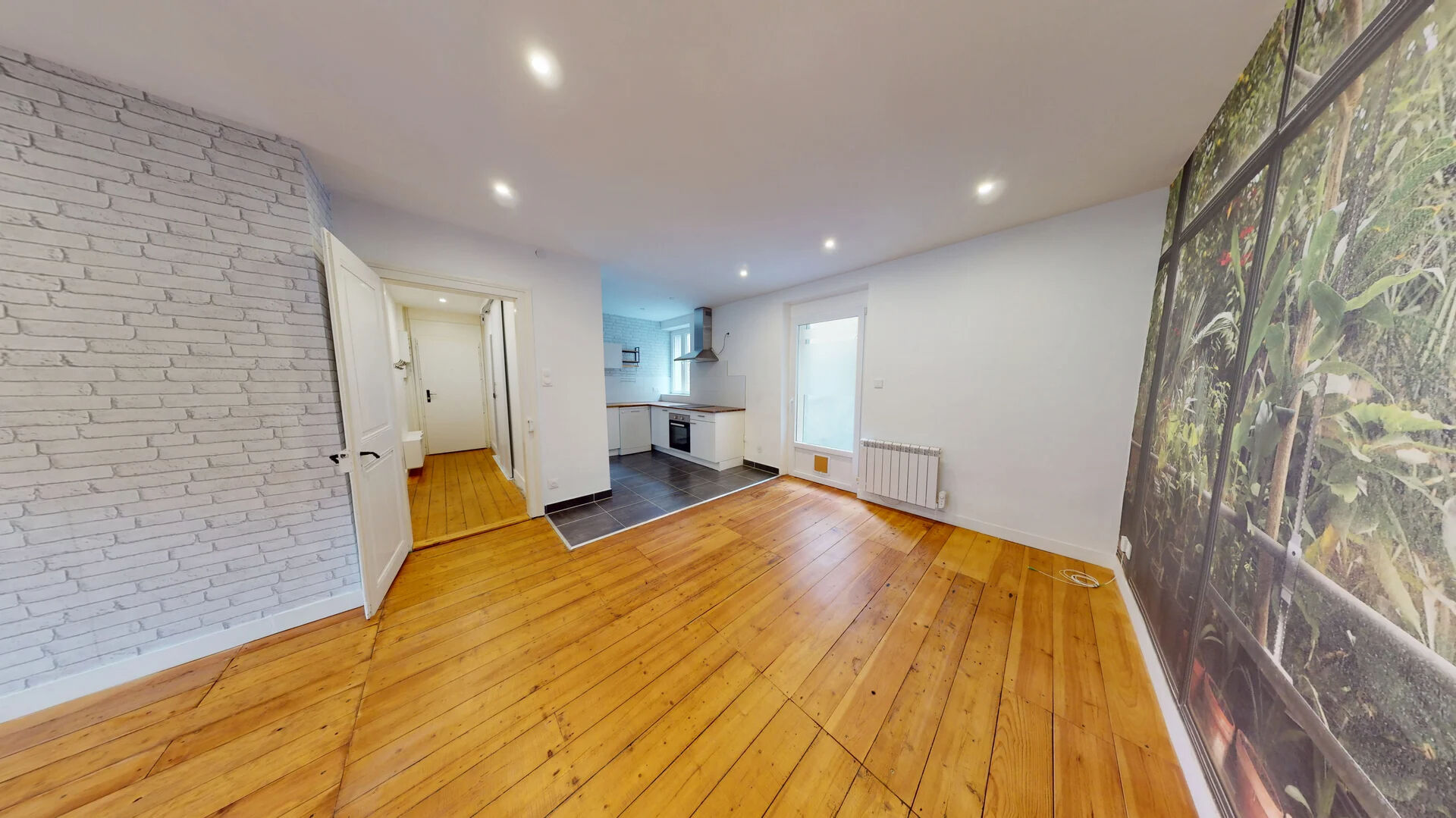 L'appartement offre un grand séjour de 26 m² ouvert sur une cuisine US moderne et entièrement équipée, idéal pour recevoir. Les deux chambres d'environ 12 m² offrent de beaux volumes et le confort se poursuit dans la salle de bains, élégante et parfaitement équipée avec douche à l'italienne et WC suspendu.
