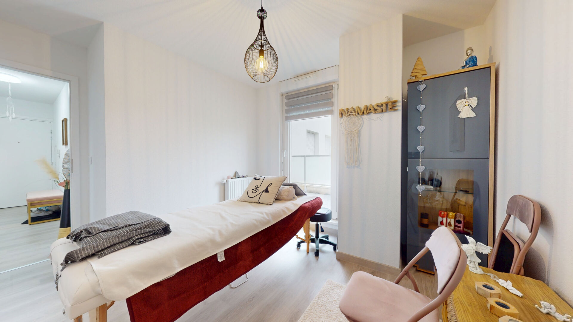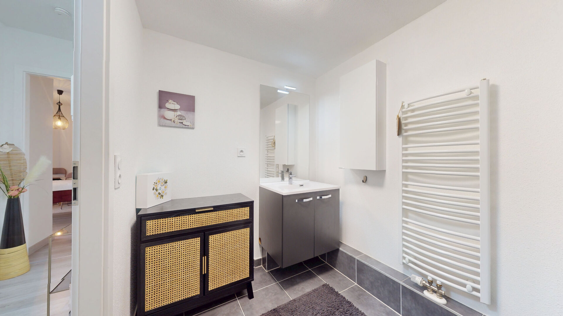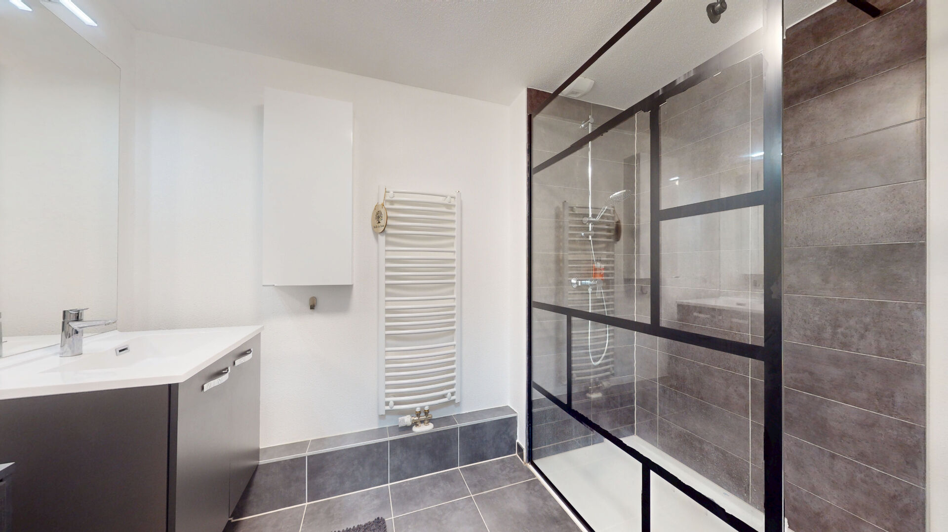 Une salle de bains moderne, WC séparés et de nombreux rangements complètent le bien.